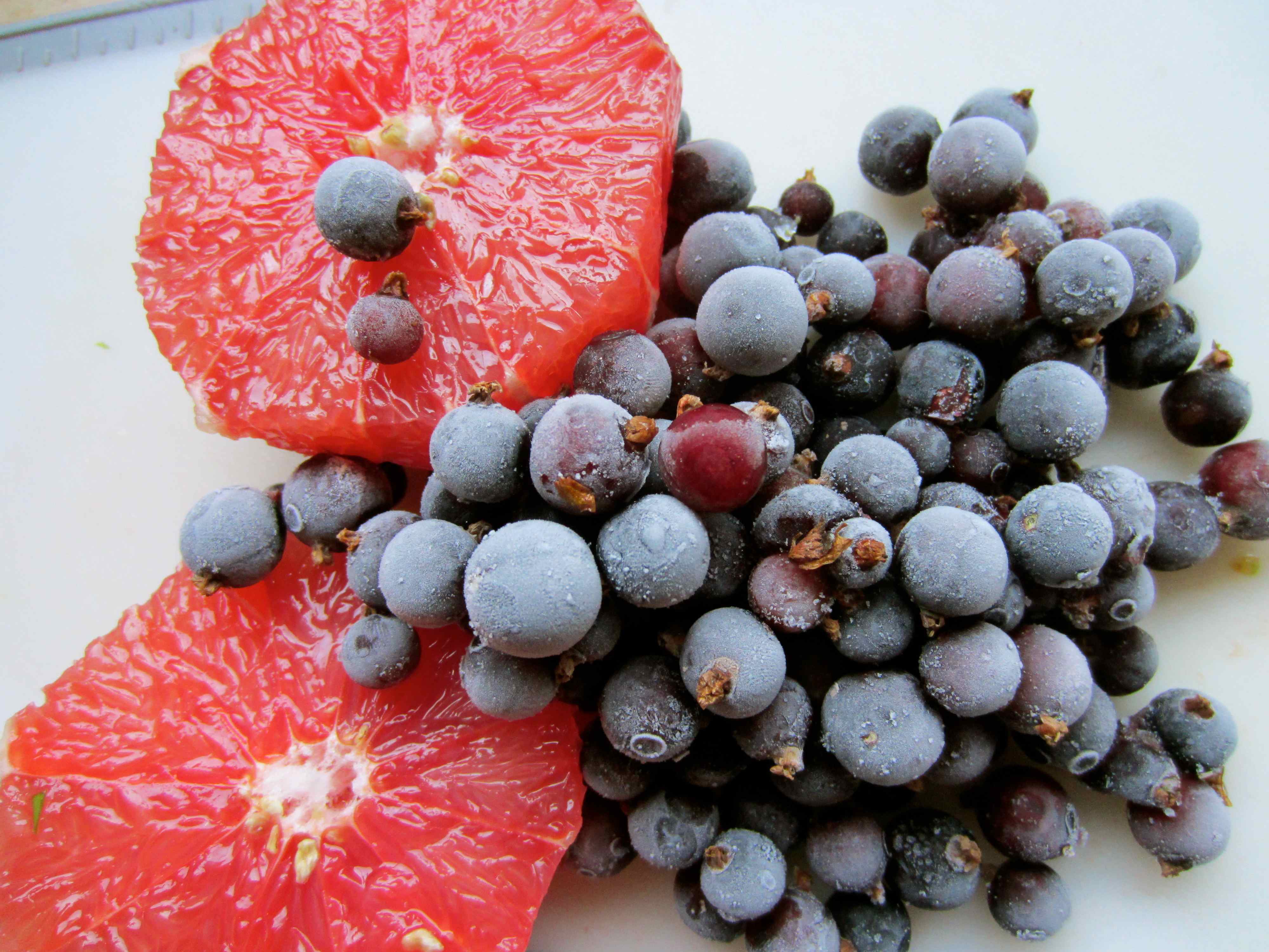 I made tomorrow’s smoothie with a pink grapefruit, blackcurrants, a banana and some almond milk.