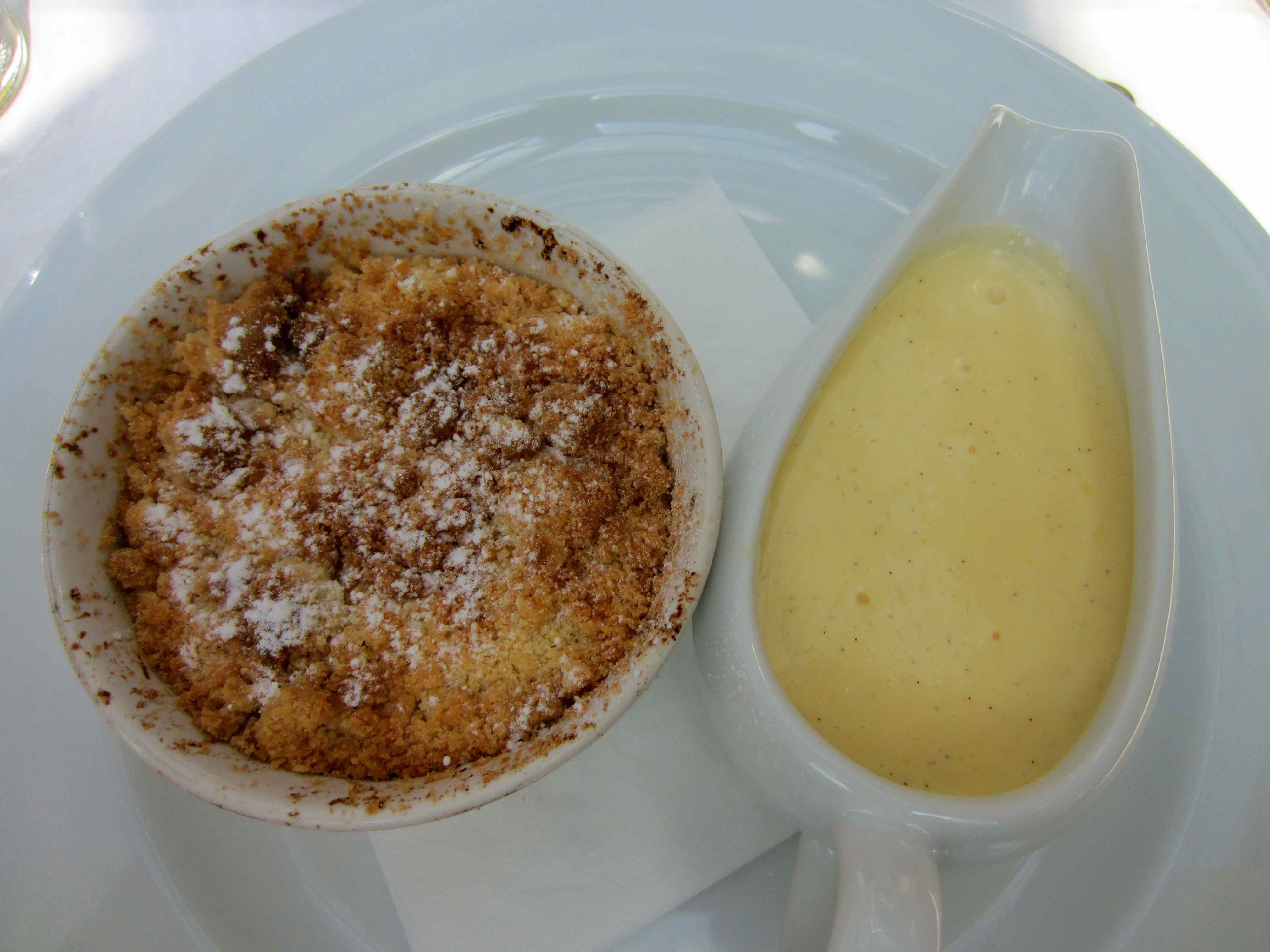I was completely sated after my main but I did manage to squeeze in an apple and rhubarb crumble and custard which was really good.
