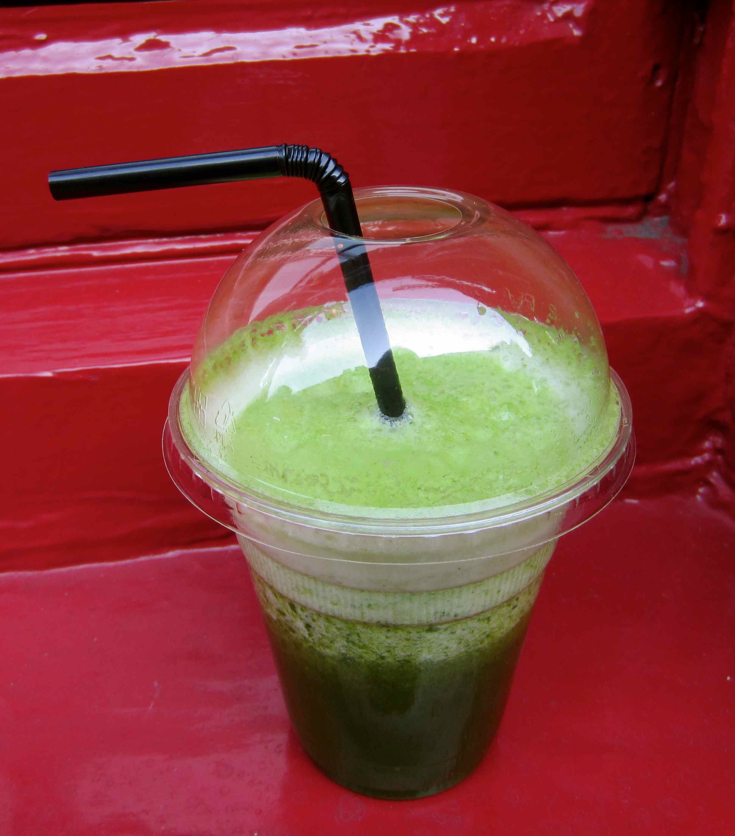 I left my smoothie at home this morning so I bought a green juice with a wheatgrass shot. It had spinach and parsley in it plus apples and a kiwi.