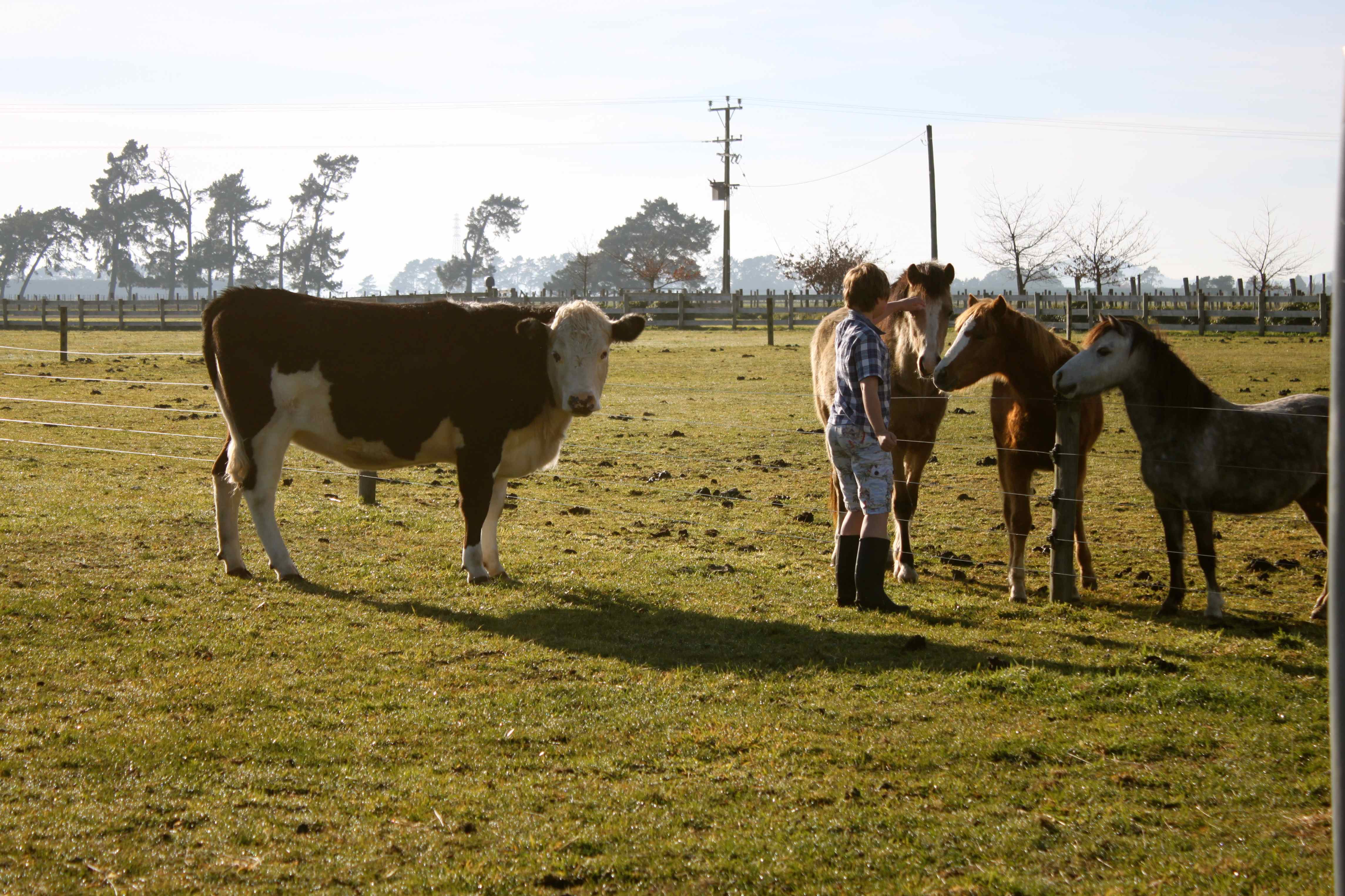 We arrived at Guy and Bex’s in the dark last night so I was not sure what would be outside.  Well, there are lots of big wide open spaces and animals.
