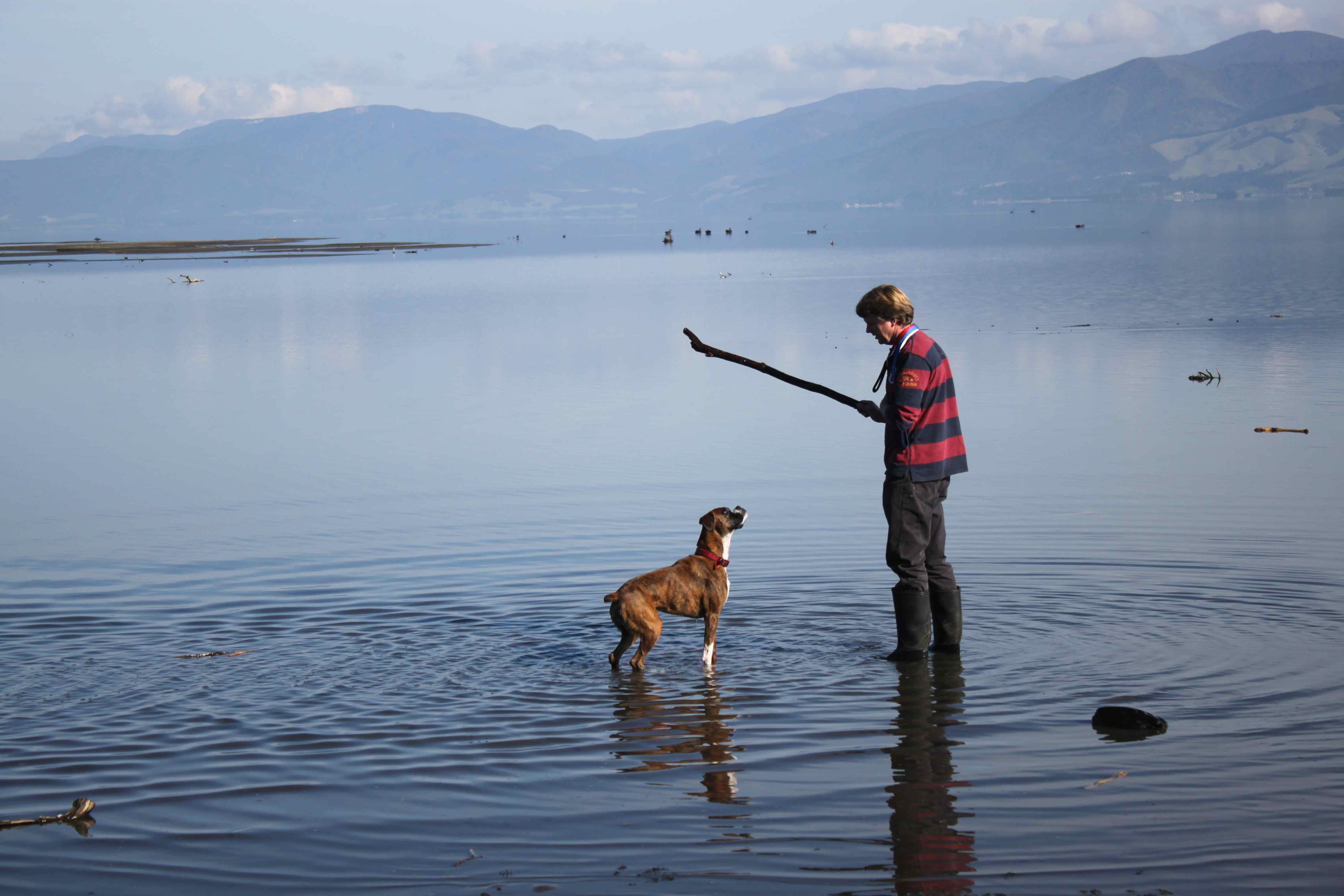 Ponies Three cute poniesAt Guy's and Bessie the cow.Bessie the cow I was not expecting to see lemons as it seems so much colder down here.Lemons Hello chooks.  The mountains provide a dramatic backdrop and some of the peaks still have snow on top.  This all adds to the beauty of this place.Chooks After breakfast of peanut butter on toast we headed off to Wairarapa Lake for a walk.  Oh my gosh, it was so beautiful.G H and Archie The sky and the lake were the same colour which just made the big space seem even bigger.H at lake The dogs loved chasing sticks and they had 2 happy stick chuckers.Harvey and Pippi All was sunny, calm and peaceful.Guy and Pippi After our lovely walk we went to Greytown and I had an Asian style chicken salad which was really good.  There was shredded white and red cabbage and carrots with warm chicken in sweet chilli sauce and sesame seeds.Asian style chicken salad Followed by a sweet and crunchy caramel and walnut tart which I had with a latte. walnut and caramel tart This was the cute Deli we ate in.Main Street Deli & CafeI am really enjoying being here.  We collected the children from school, visited their hospitable and friendly Grandparents and then got back for a delicious supper.