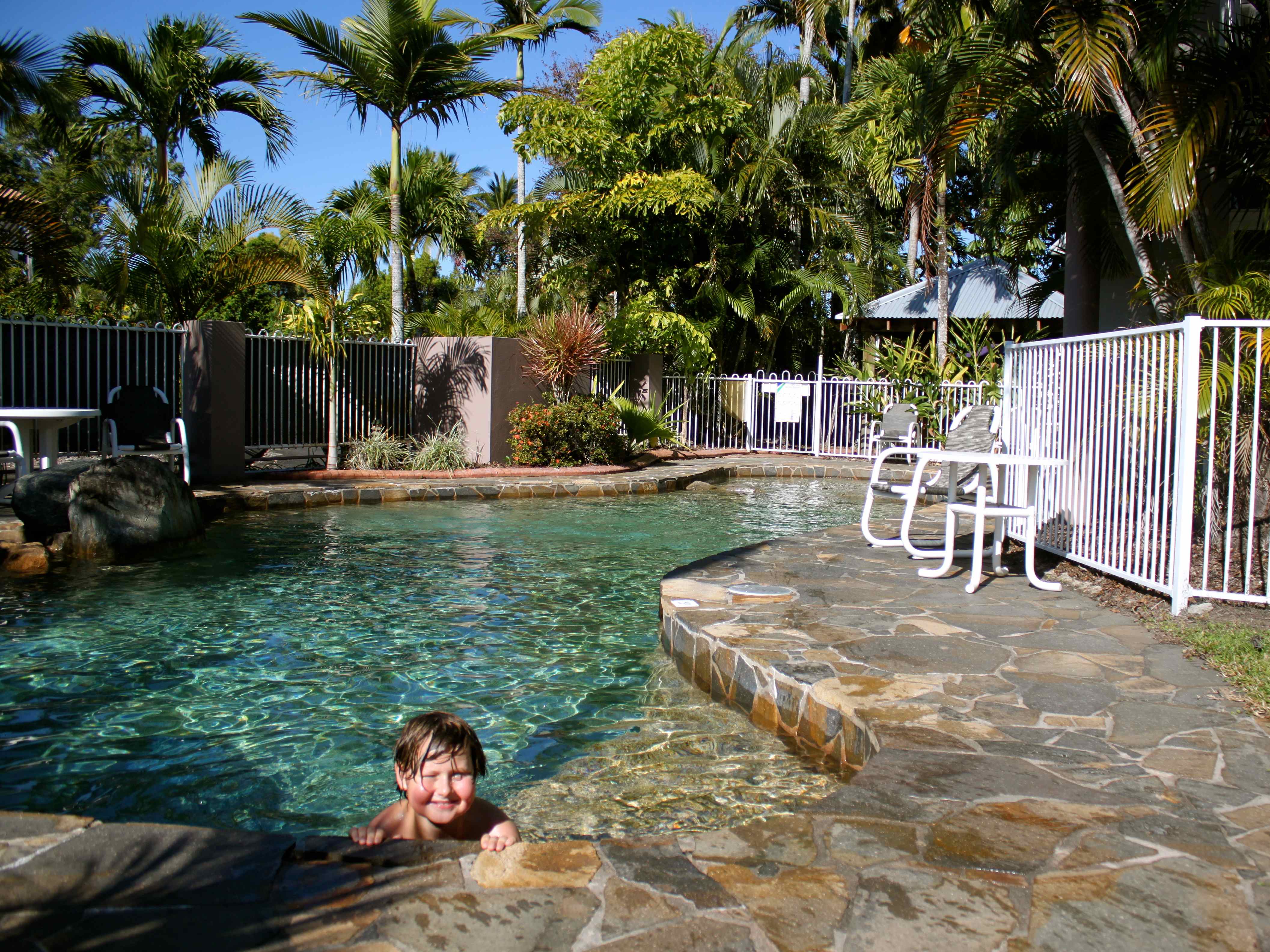 We had a very lazy day which started beside the pool at our hotel. Harvey swam,
