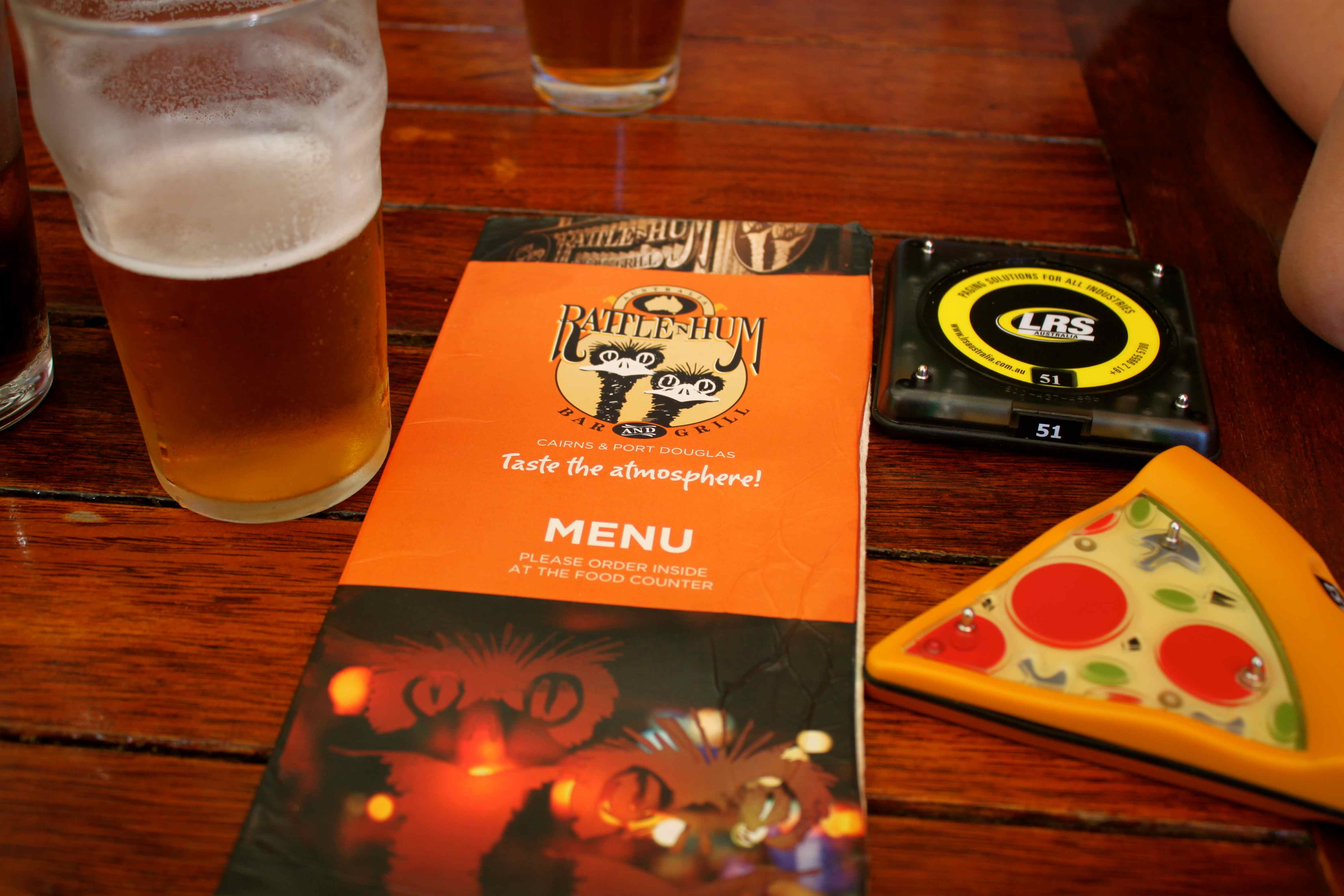 We walked in to the centre of Cairns for a late lunch and went to a large place popular with backpackers – Rattle N Hum. We enjoyed an ice cold Victoria Bitter (VB) which always brings back happy memories.