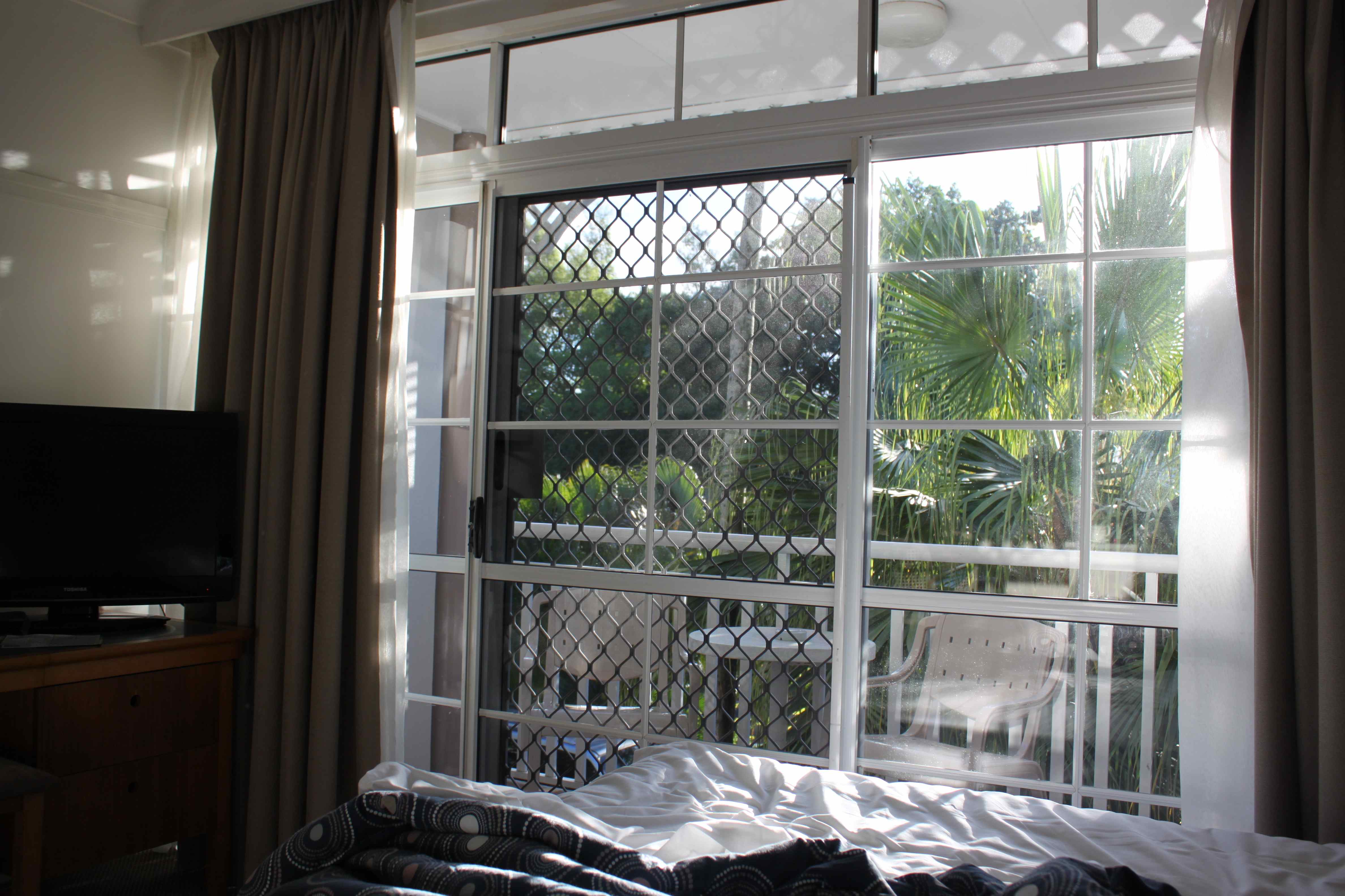 This was my view from my bed this morning – rather warmer and more tropical than New Zealand. We arrived when it was dark and I was looking forward to seeing outside in daylight.