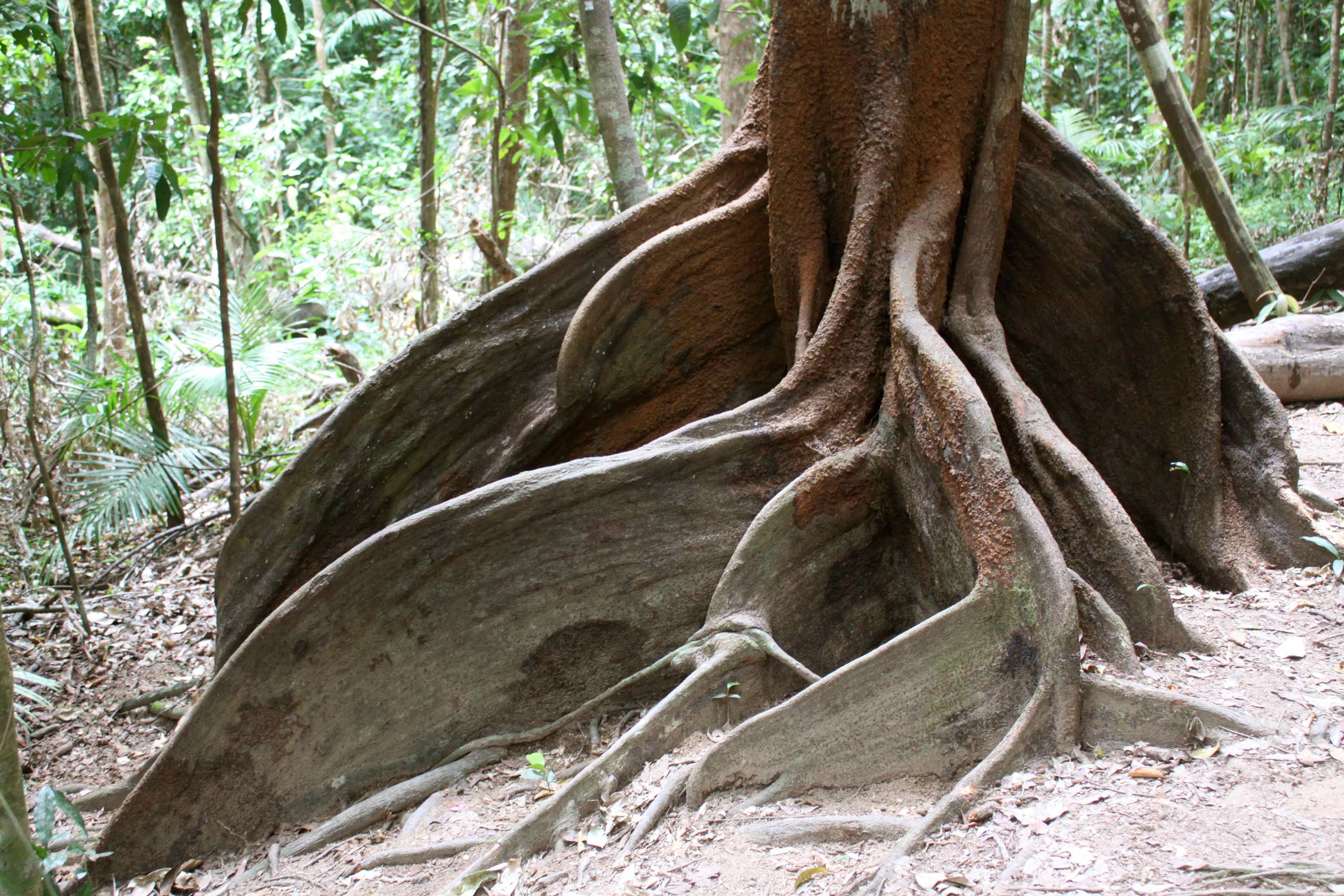 The tree were extraordinary. Trees in a rainforest grow so tall that they develop buttress roots to support themselves.