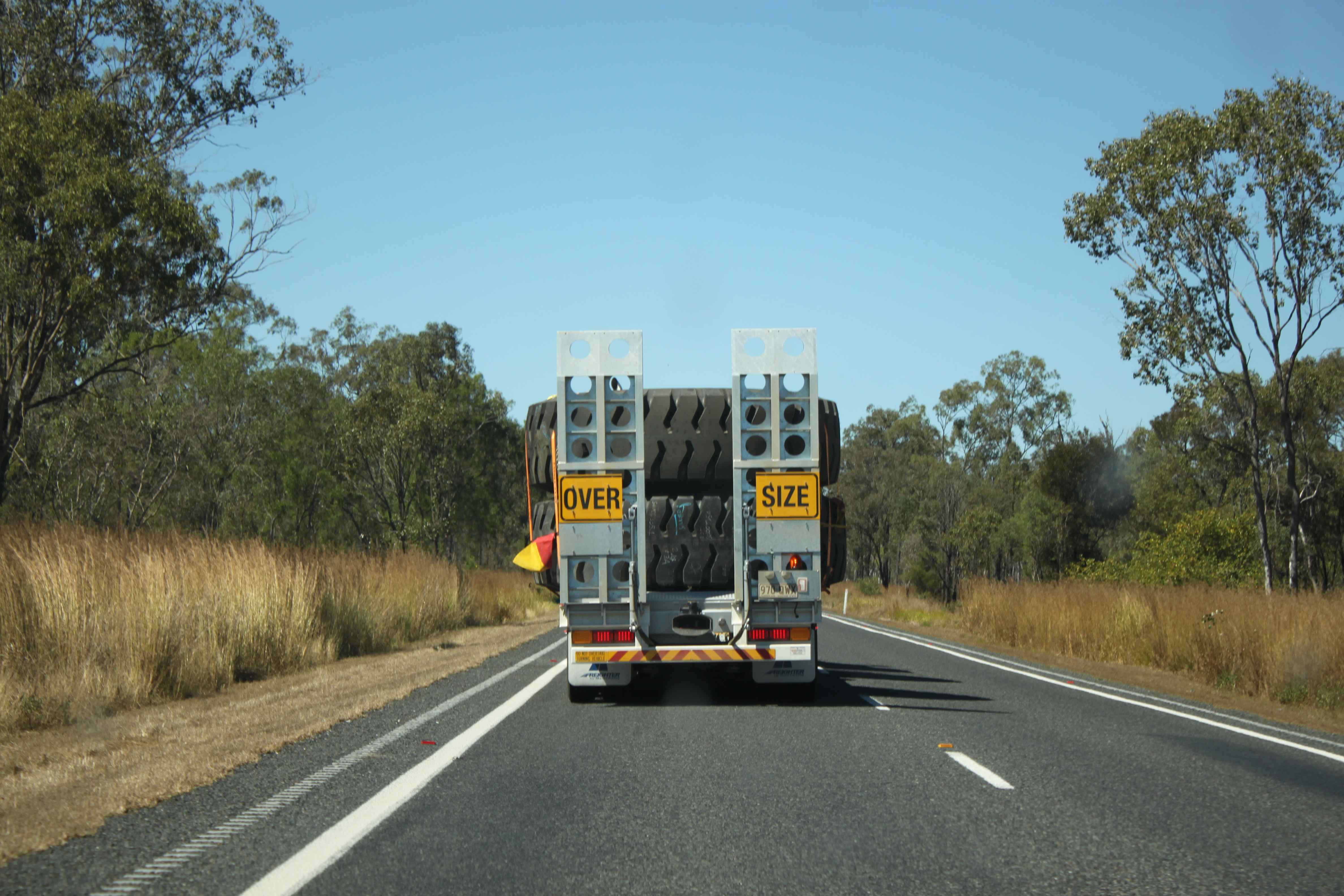 Australian trucks are more like the huge trucks you see in the USA than the trucks we have at home. We saw lots today carrying ‘Over Size’ loads. We saw 2 houses being transported (yes, we truly did), lots of industrial parts, a huge scoop for a massive digger and least 4 trucks transporting huge tyres. We guess these are headed for one of the mines.