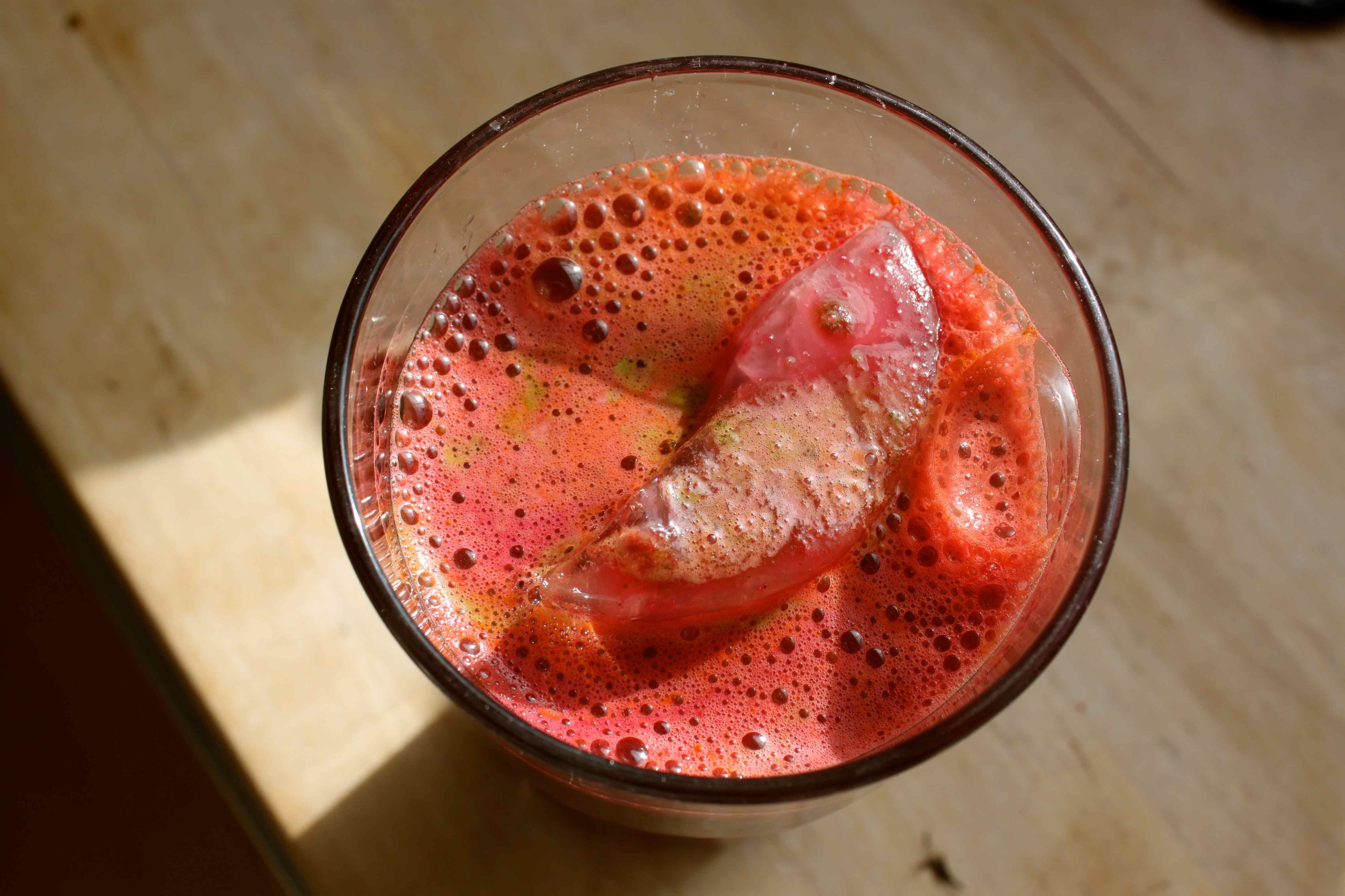 I have actually under juiced today. This was not intentional but circumstantial. I was too busy working today to make all the juices I should have had. In the evening I went out to collect Harvey from a lovely cricket and swimming party. I was feeling hungry but managed to resist a glass of wine, twice, burgers and hot dogs which looked really good and even a platter of rocky road which was placed really close to me. I was so relieved when it was all gone!