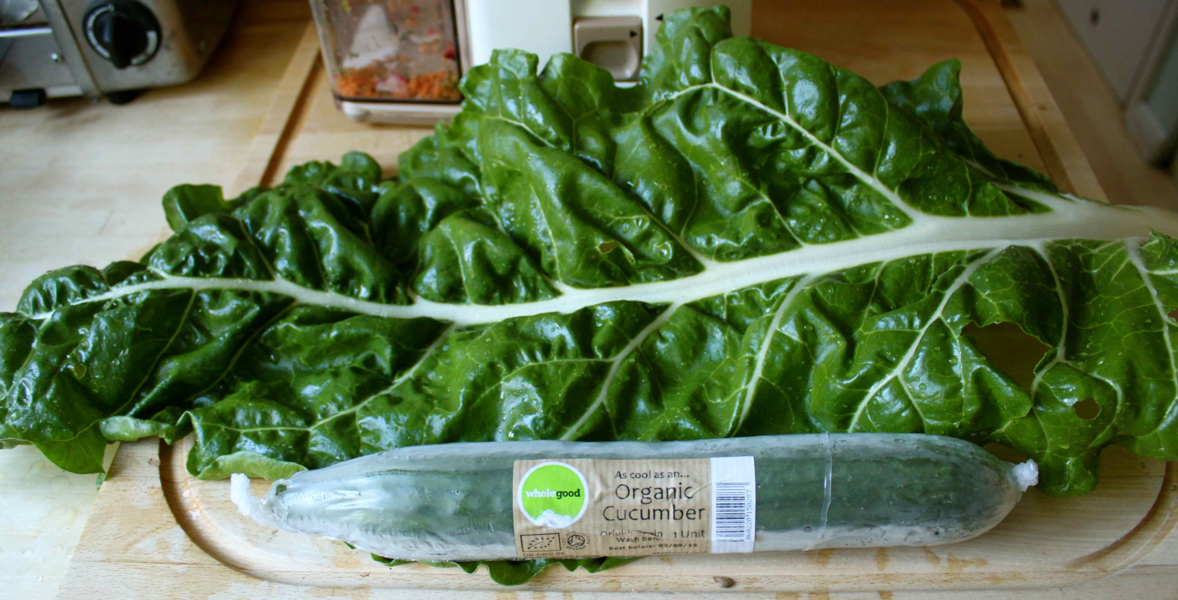 Look how huge this Swiss chard leaf is! I juiced 2 of these, with a cucumber, 2 celery stalks, half a lemon and an apple.