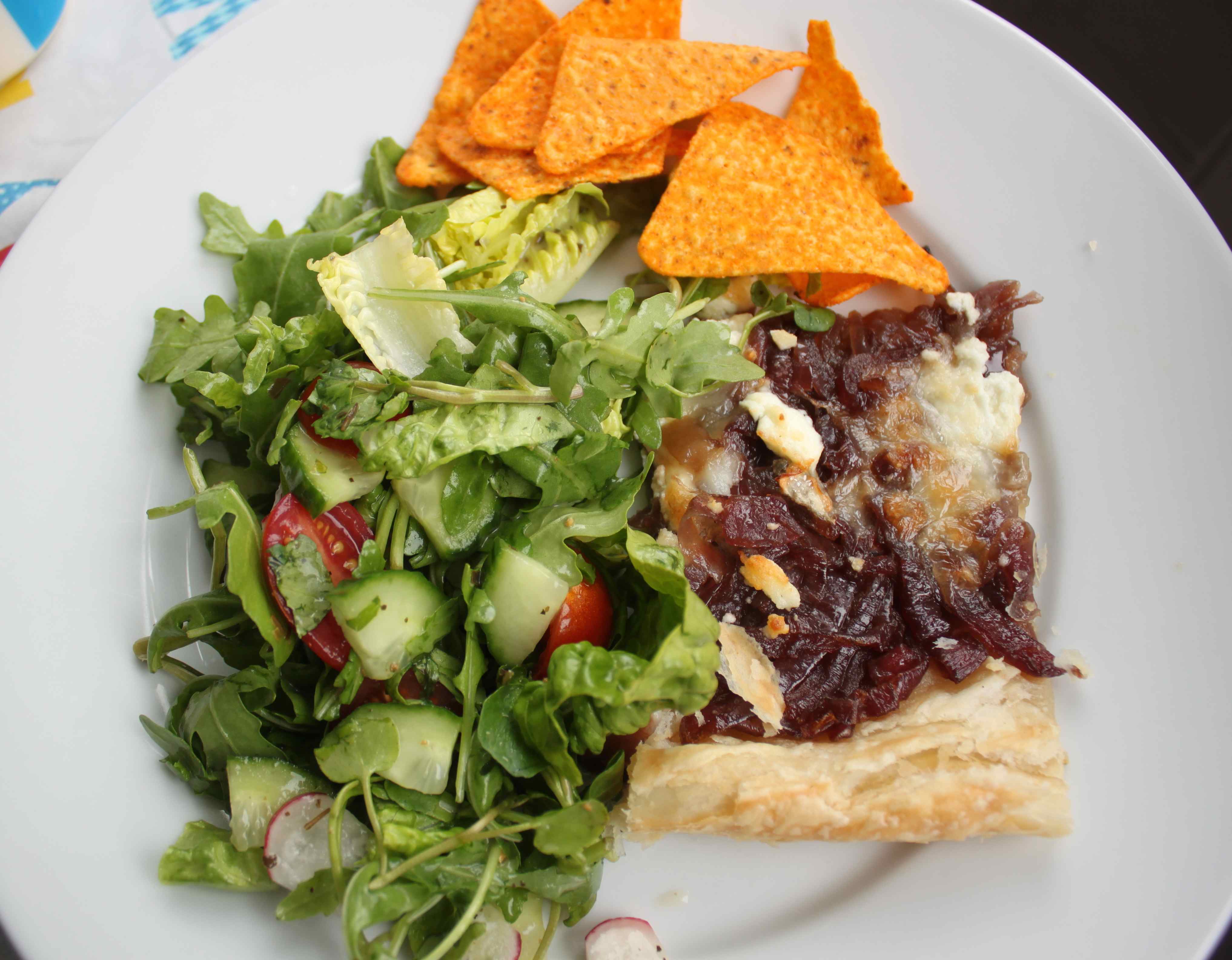 More food. My goodness we did eat well this weekend. Gini made us all a delicious caramelised onion and goats cheese tart