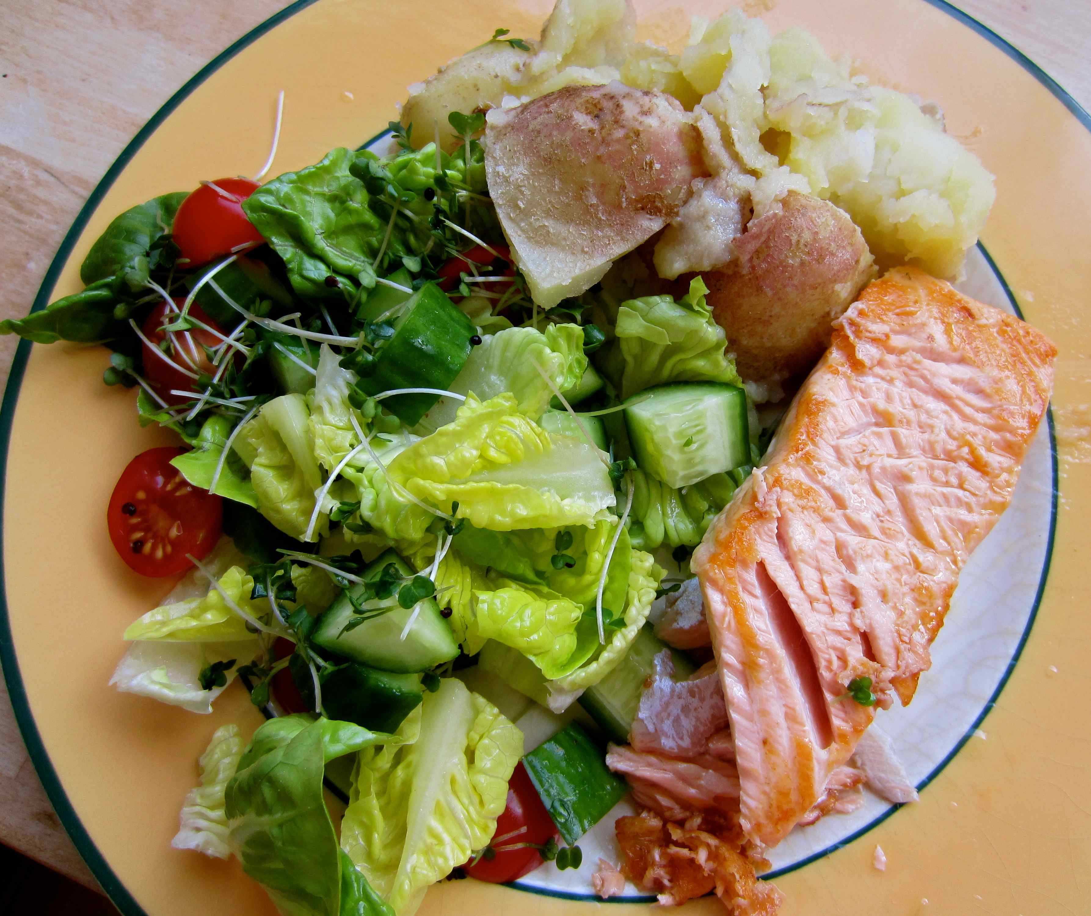 I had a smoothie for breakfast full of every superfood I could think of with only blackberries for sweetness.  For lunch we had some home grown potatoes for the first time all year.  They were perfect and no evidence of slug damage which is always a possibility.