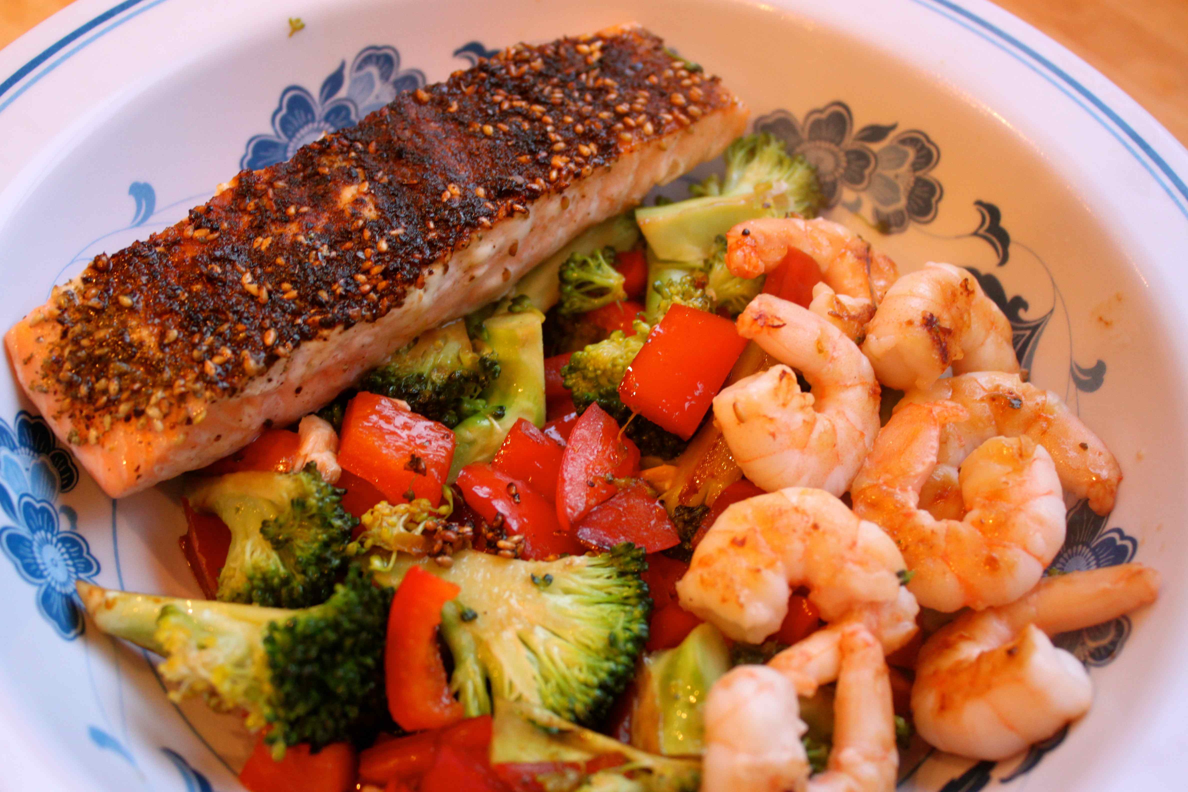 Luckily I bought another Butternut Squash because this one I was planning to eat for lunch was inedible!mouldy squash 2 Quite a fascinating amount of mould there!mouldy squash 1 Harvey had one of his old school friends over for lunch which he really enjoyed and he always asks for Spaghetti Bolognaise when given a choice.  I made the bolognaise with beef and lots of vegetables; onions, garlic, mushrooms and red peppers in a tomato sauce.  I had mine on mashed squash rather than pasta.lunch 28-9-13 For supper I made a stir fry with broccoli and red pepper and used the Zat’ar on the salmon.Zat'ar I cooked up the prawns too.King prawns A delicious and low sugar supper – salmon cooked with Zat’ar, broccoli, red pepper and prawns with soy sauce.Supper 28-9-13As long as I manage to resist snacking this evening, I will have managed a low sugar day – the first time for ages.  I am getting back on track.