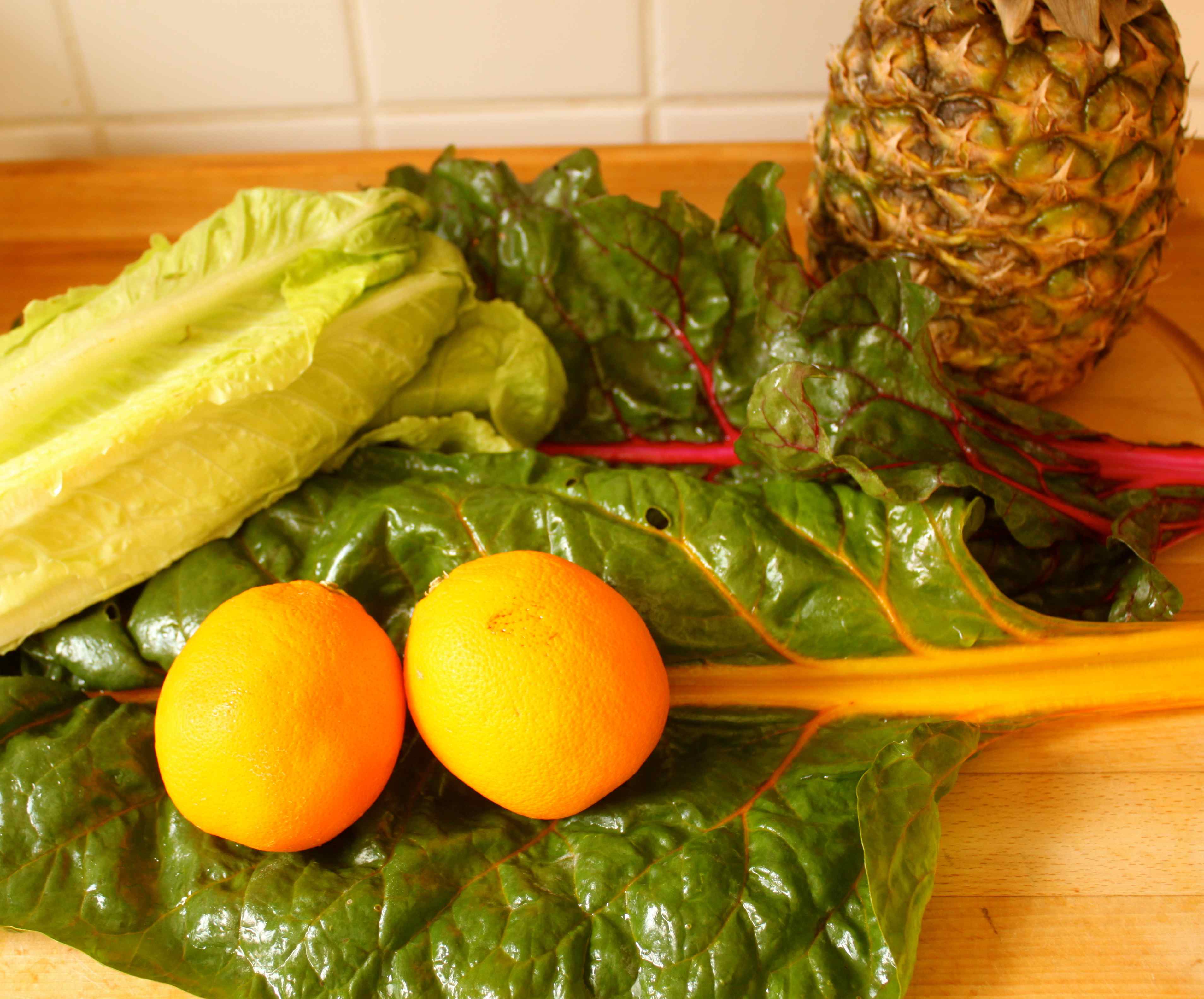 Swiss Chard 28-9-13 I wanted a mega dose of vitamins and minerals so I juiced up the pineapple, Swiss Chard, Romaine lettuce and 2 oranges.veg for juice 28-9-13 I felt better just looking at these lovely green leaves and the orange.chard and orange I only juiced half the pineapple and everything else in the pictures.  It made 3 glasses full of liquid goodness which I sipped during the morning.  It tasted good.  It genuinely did taste very good.