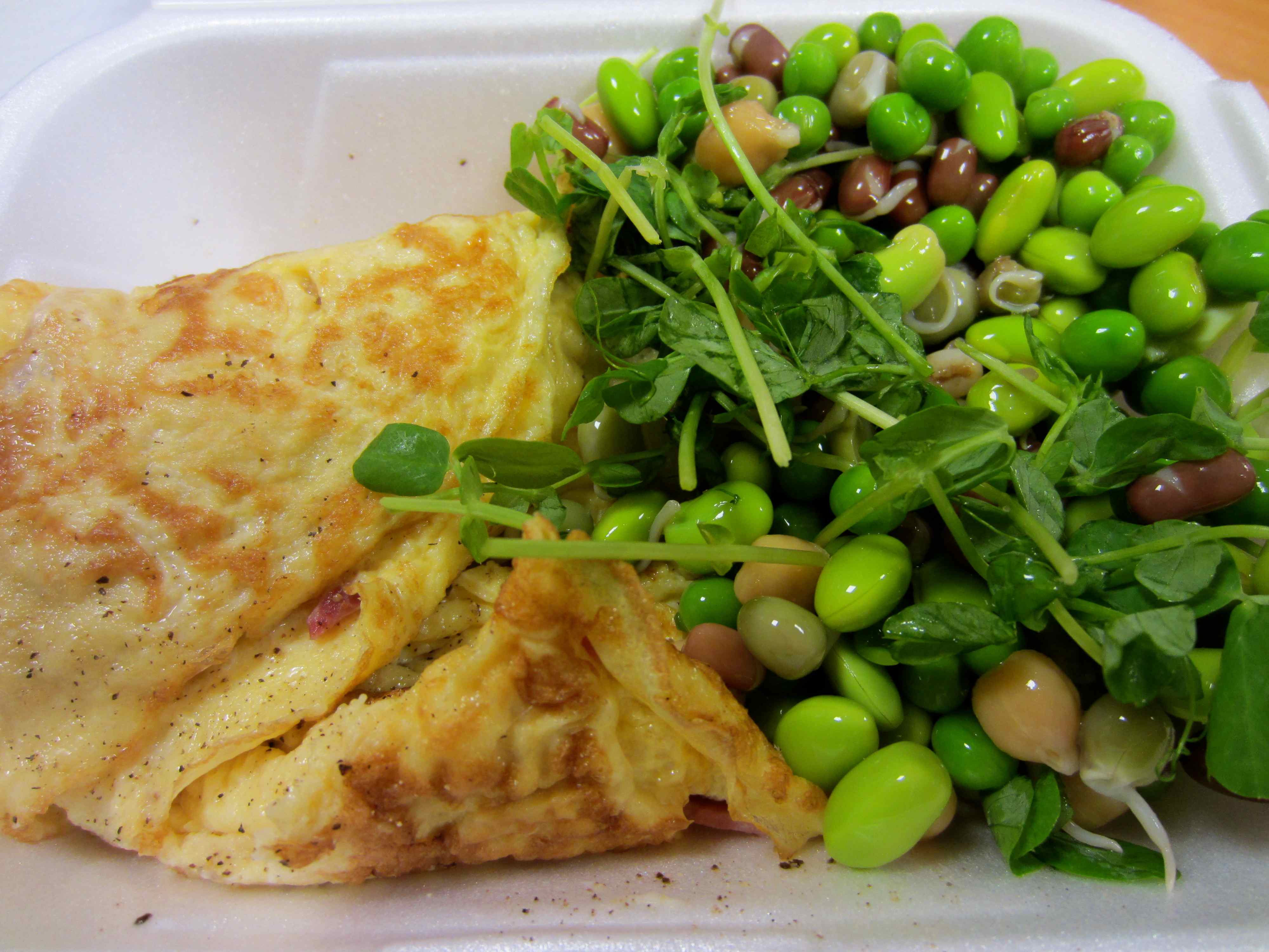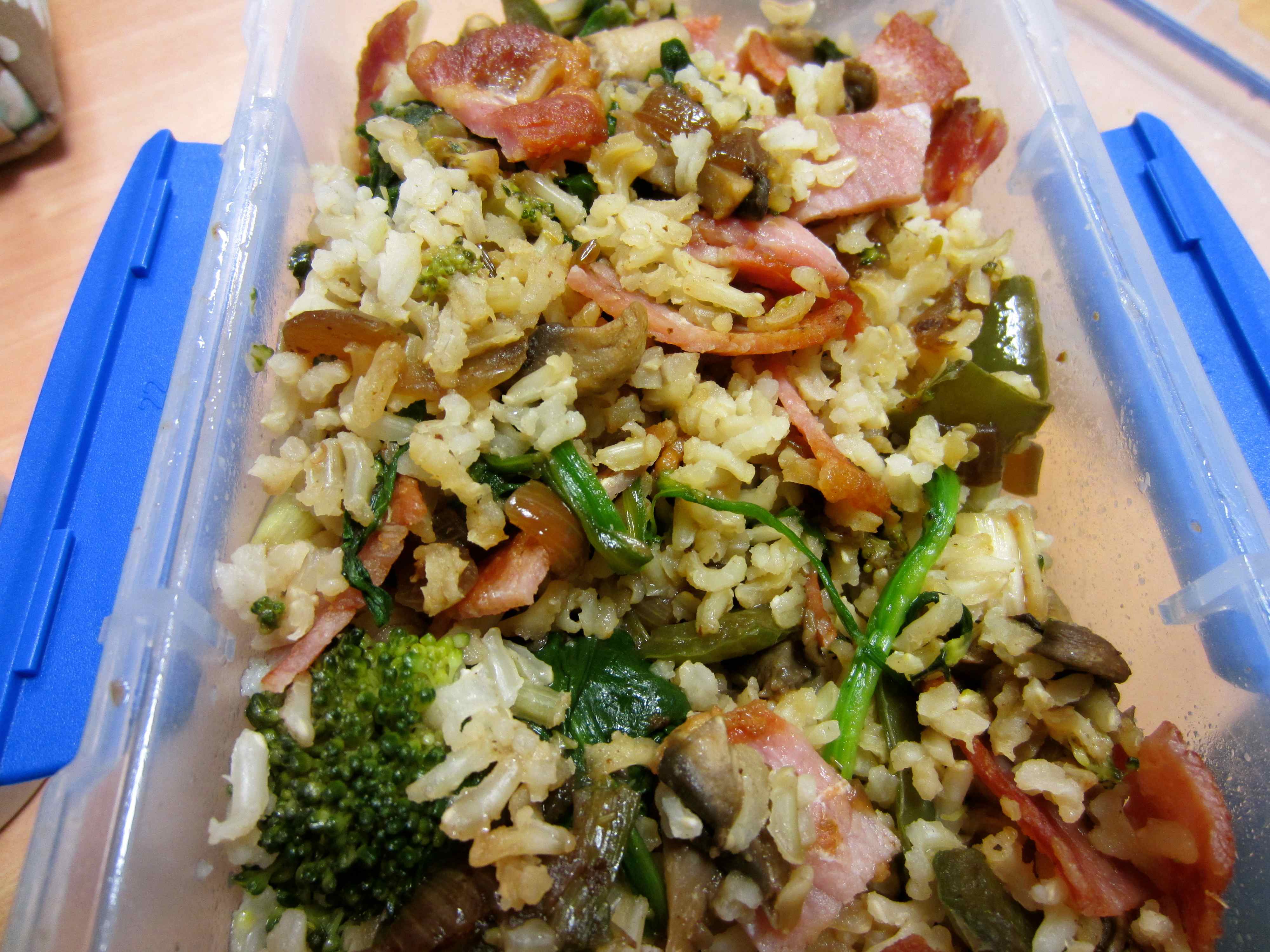 Southwark Tube First coffee of the day and I heated up a portion of last night’s dinner.  I cooked a double portion last night so I had something for today.  People who know me well, brace yourselves for shocks – I actually used a microwave!  I hate microwaves, don’t trust they are safe and avoid them.  But I really wanted something warm and did not fancy cold bacon and cold spinach so I used the microwave, briefly.breakfast on desk This is a wonderful concoction and I really enjoyed it.  As a reminder it is onions, green pepper, spring onion, celery, mushrooms, spinach and broccoli with brown Basmati rice and bacon.  Delicious.  That kept me going from about 7:30 am until 2pm and I wasn’t even very hungry then.breakfast 3-10-13 close up I went to M&S to buy lunch.  I agree.AWIT building Another world is possible.  A no added sugar world.Another world is possible M&S have so many delicious sounding salads with excellent wholefood ingredients, such as this one I bought today.M&S sprouted pea and bean salad But they ruin it by adding sugar to nearly all the dressings.  Why?  I never add sugar when I make a dressing.  it is really annoying.salad 3-10-13 I threw away the dressing and had the salad with a cheese and ham omelette I bought from Frank’s Cafe, just round the corner from the office.  One of my colleagues often gets his lunch from there and recommended it.  He has his with chips but I just had the omelette.  I could have had the chips but I am not literally going to eat anything I can, as long as it is sugar free.  I do want to lose lots more weight so I will save chips for a time when I am struggling with my sugar demons.