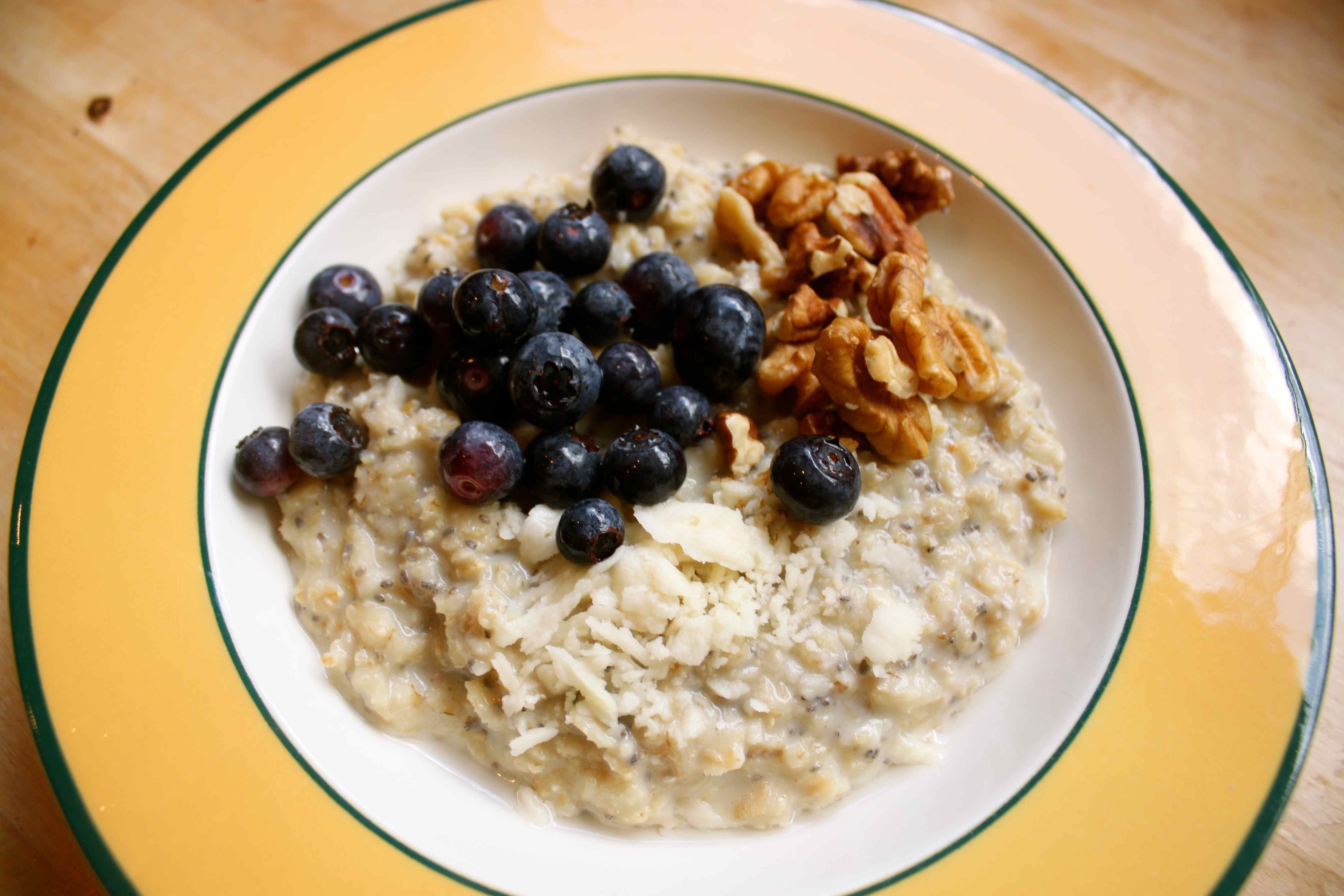 I made porridge and added chia seeds and walnuts for protein and 1 tsp coconut butter for fat plus extra protein, vitamins and minerals.