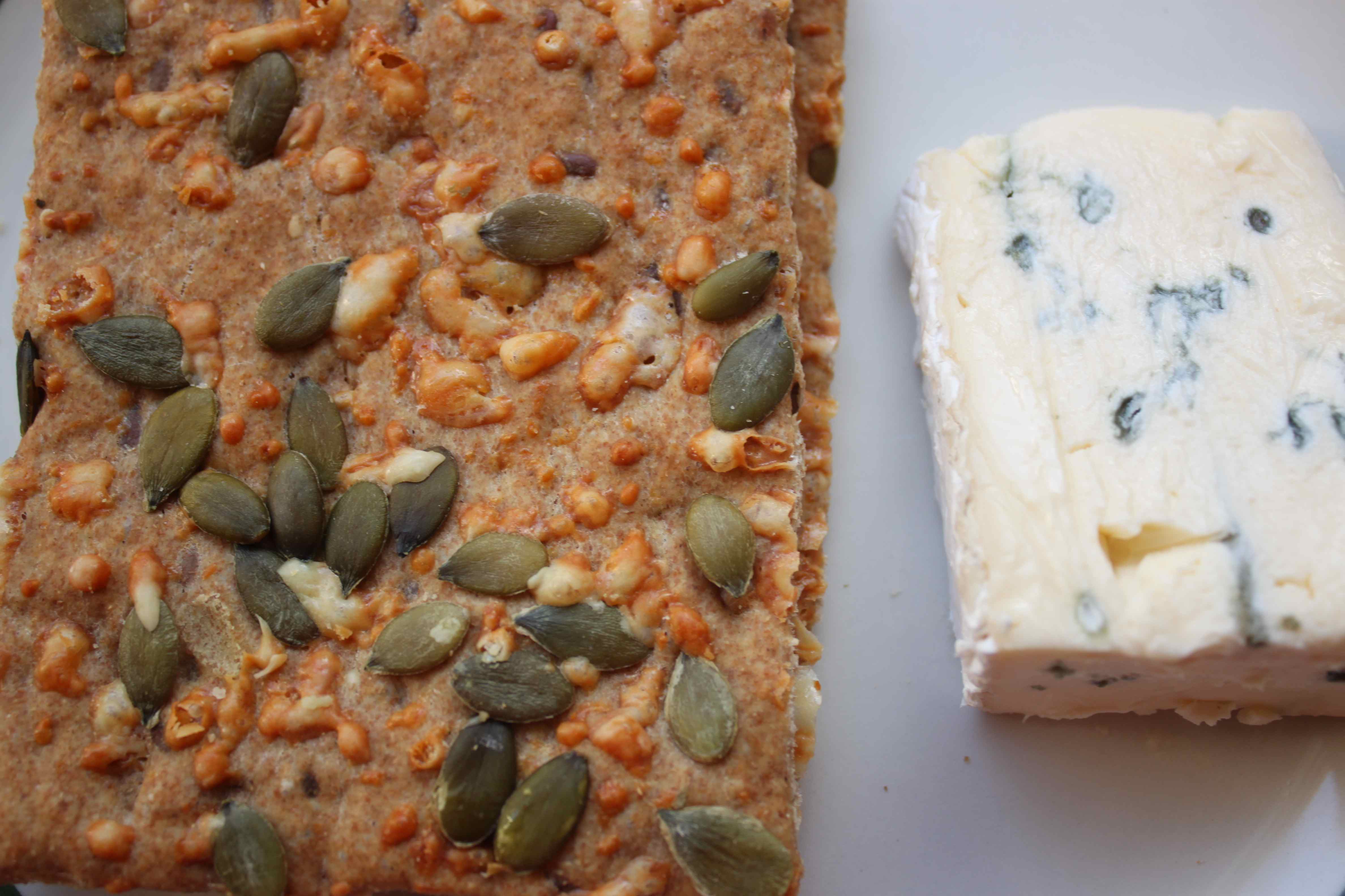 Today though was a day which would usually send me screaming and scoffing chocolates and cakes. Instead, I scoffed crispbreads and this fabulous Cambazola which is a very creamy soft rind cheese (like a Brie) with blue in it. It hit the spot perfectly and saved me from a sugar frenzy.