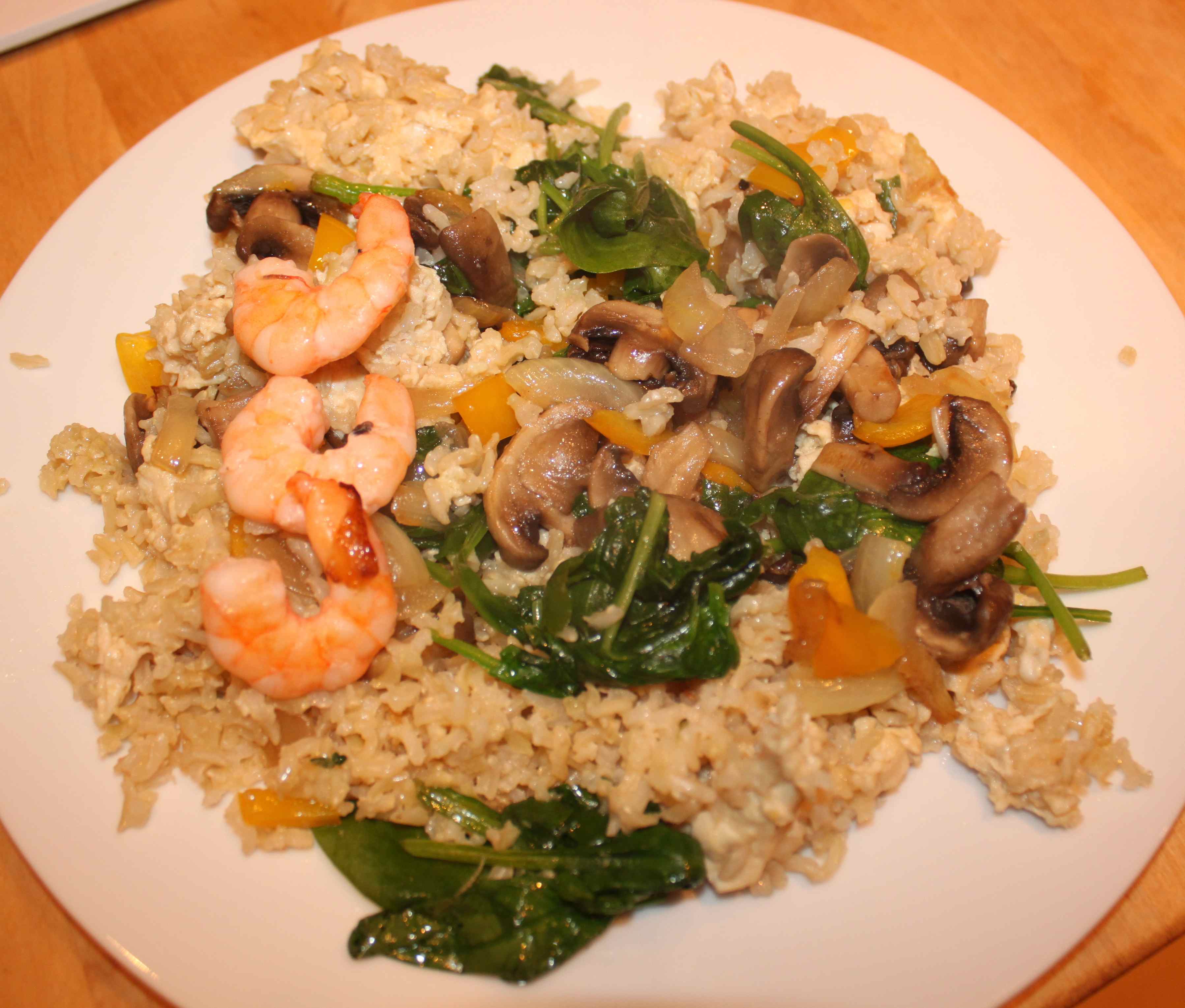 Dinner was a quick and easy put together. Egg fried rice with mushrooms, onions, yellow pepper and 3 large prawns. Adequate and tasty enough.