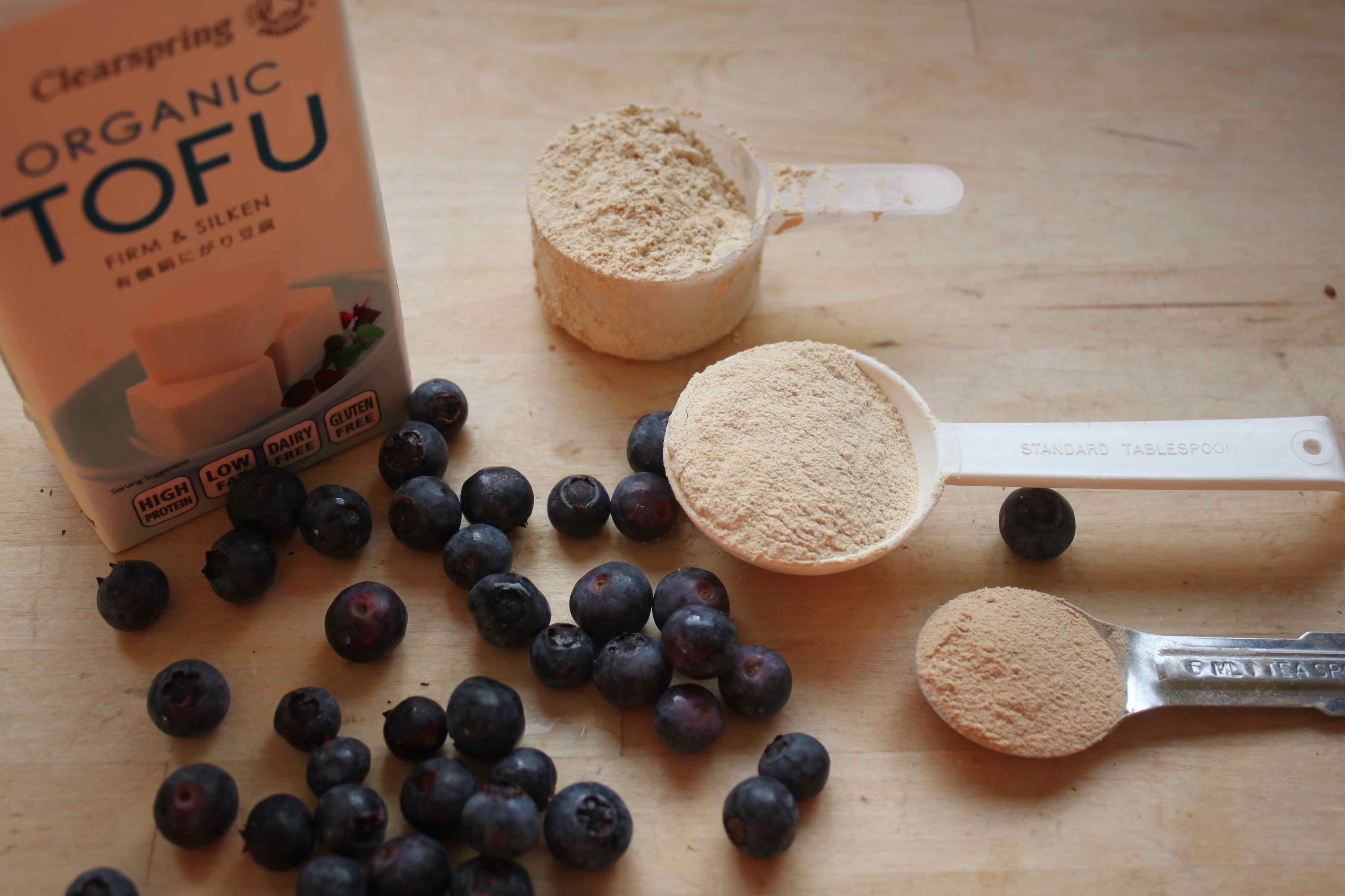 I used a small 300g carton of tofu, a handful of blueberries (only the ones pictured), 1 tsp lucuma powder, 1 tbsp maca powder, 1 scoop of protein powder and soya milk to get it to the desired consistency.