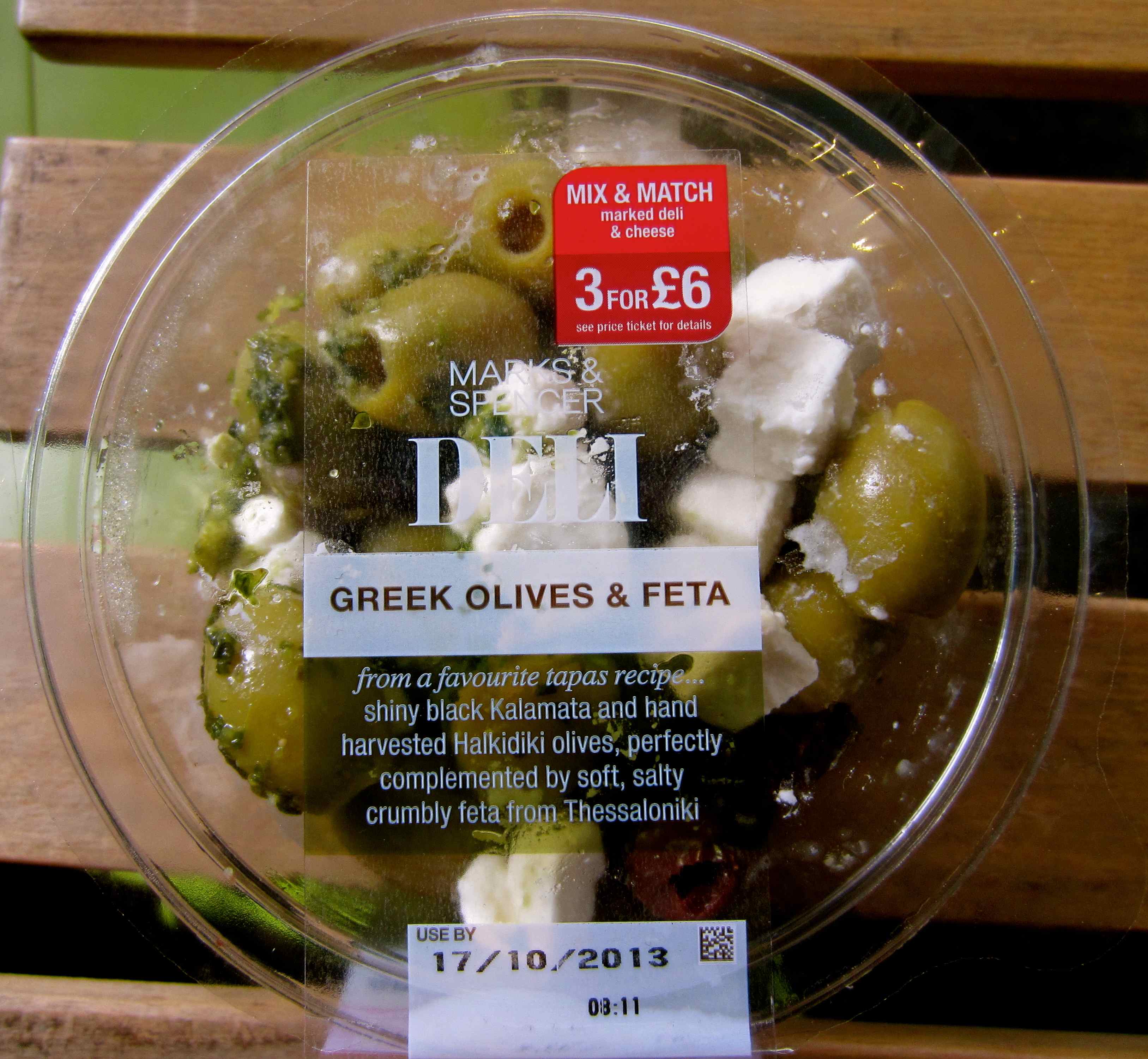 I had a very busy morning with back to back meetings so was looking forward to a stroll at lunch time and a browse in the local M&S Food to choose my lunch. But it was raining, I had no coat and as I went out at peak lunch time, M&S was heaving. So it was not a pleasant experience and I was not sure what I fancied. I wasn’t trying to be good, I really wasn’t tempted today by anything sweet. I wanted to be healthy but couldn’t decide what to have. So I bought the olives and Feta.