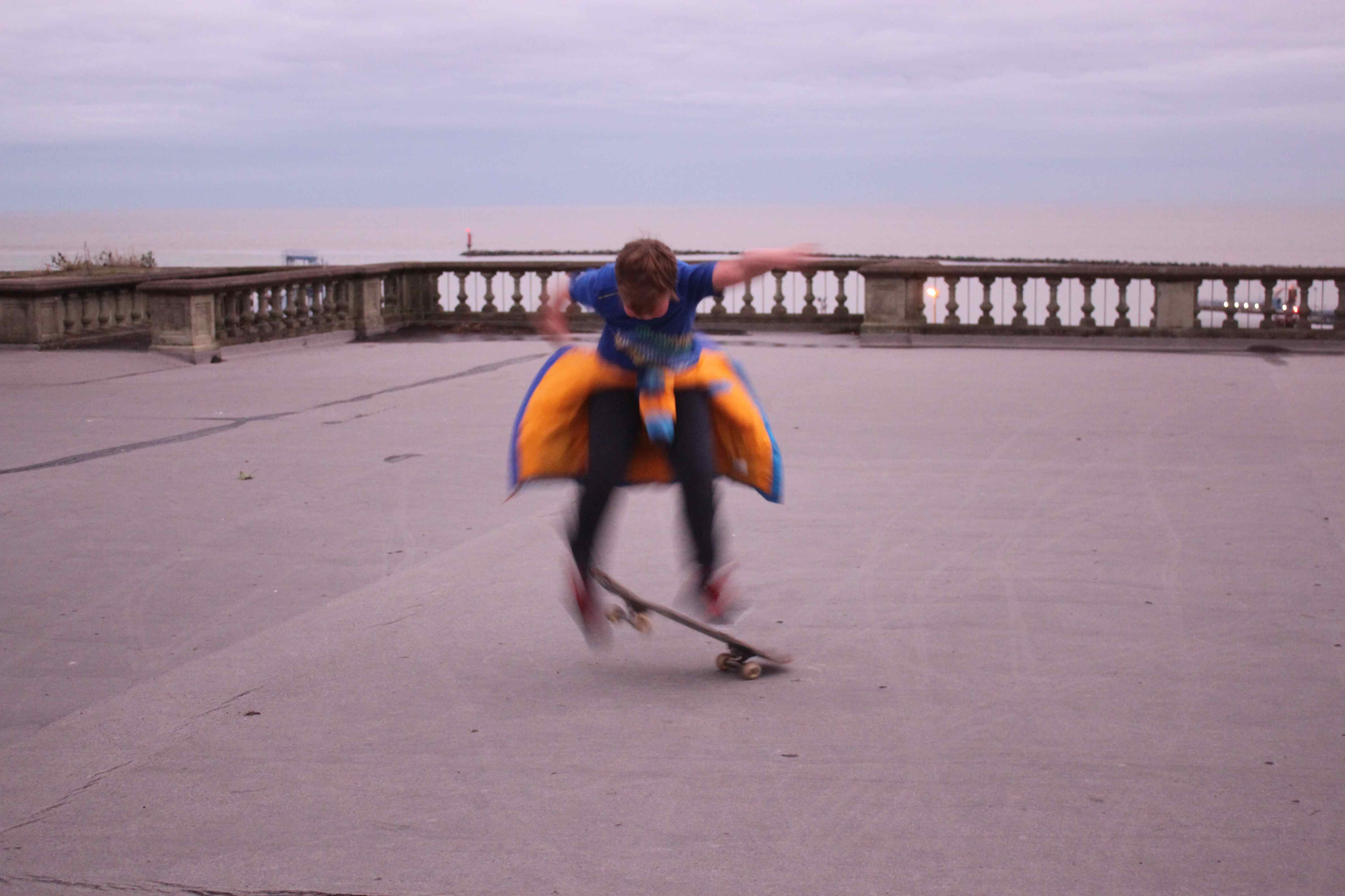 Well I walked and Harvey skateboarded.