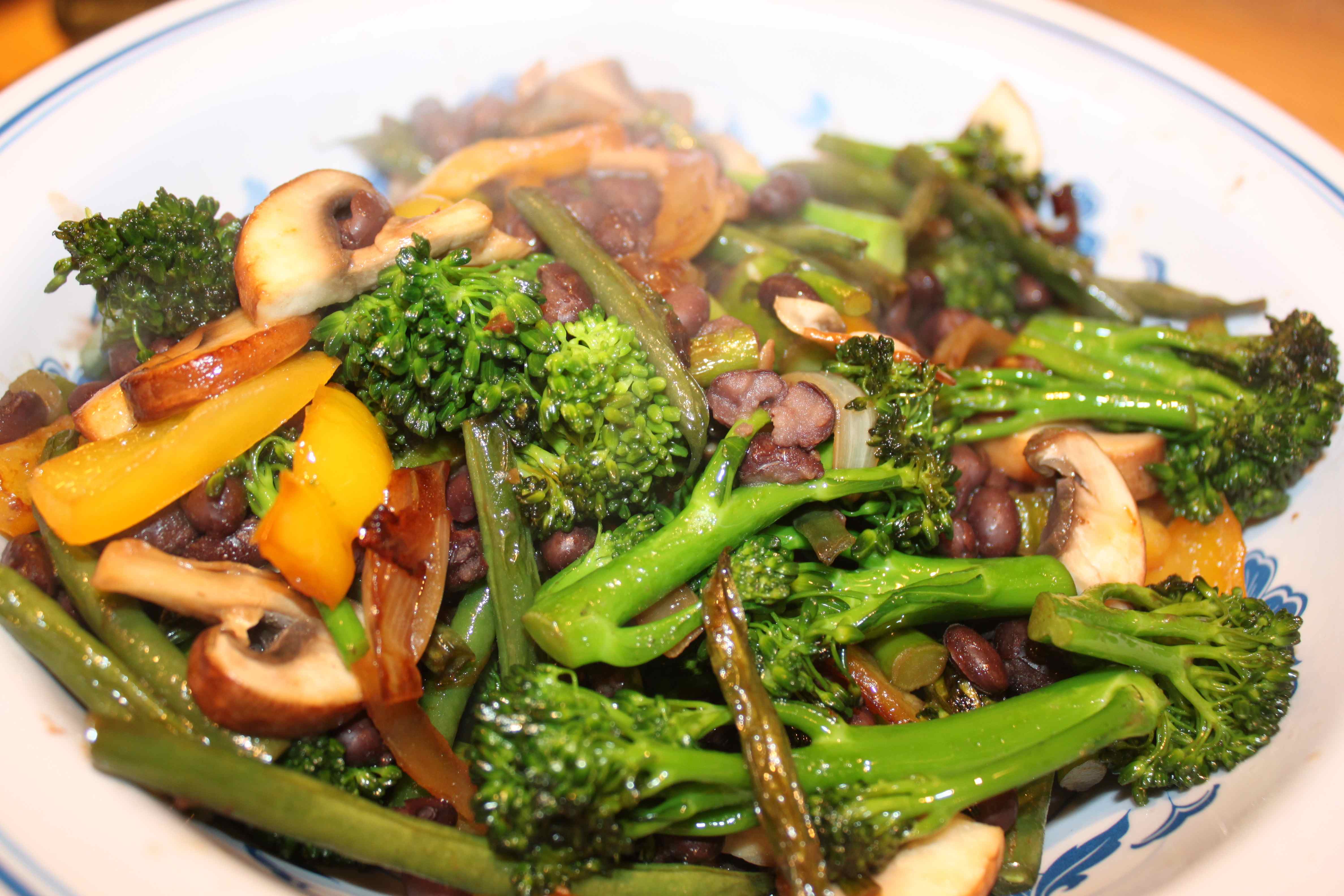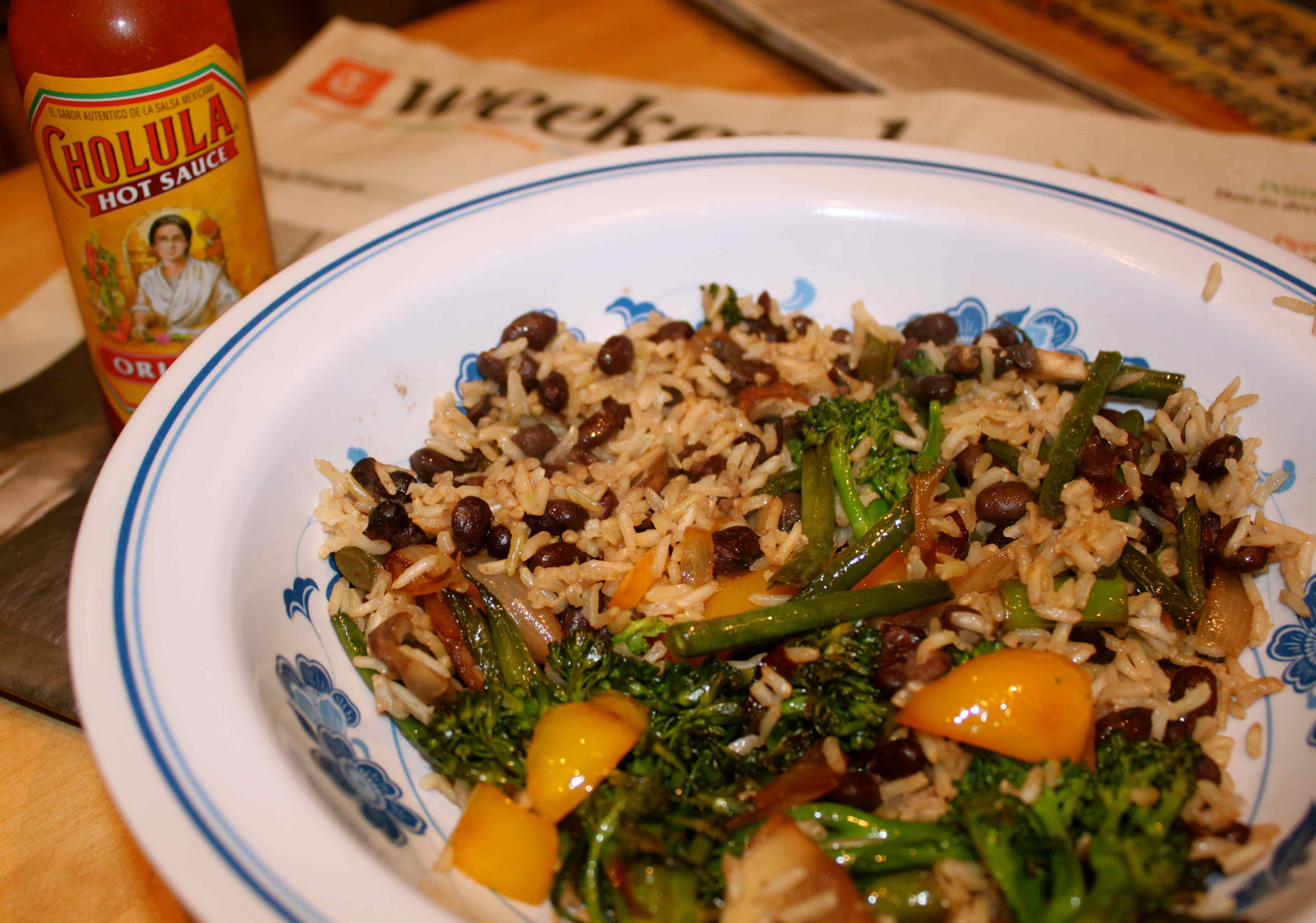 I added some black beans and mushrooms, stir fried those with the vegetables and set aside while I stir fried the rice, just briefly.