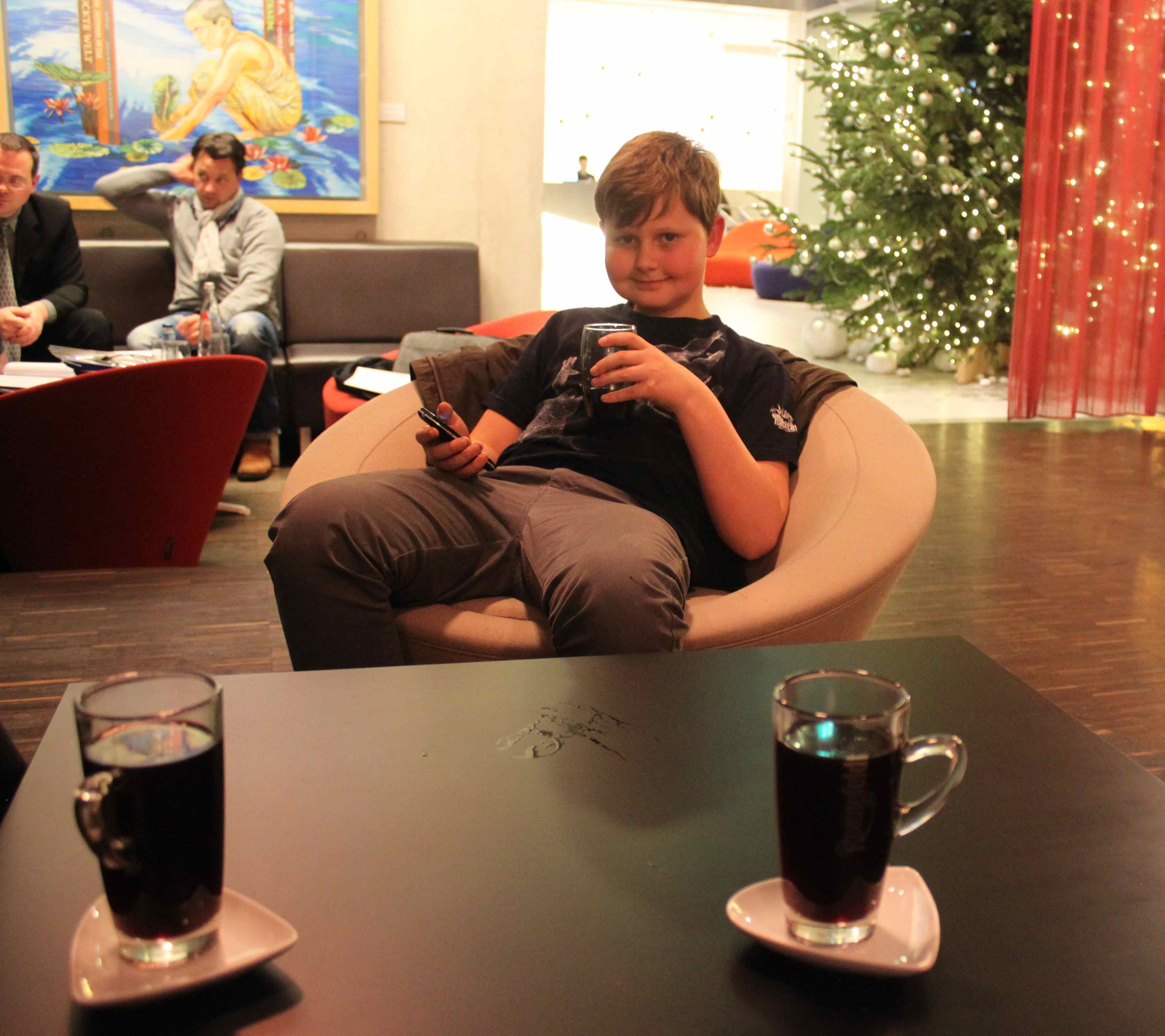 So we settled down to enjoy our complimentary Gluhweins – no, Harvey was not drinking Gluhwein.