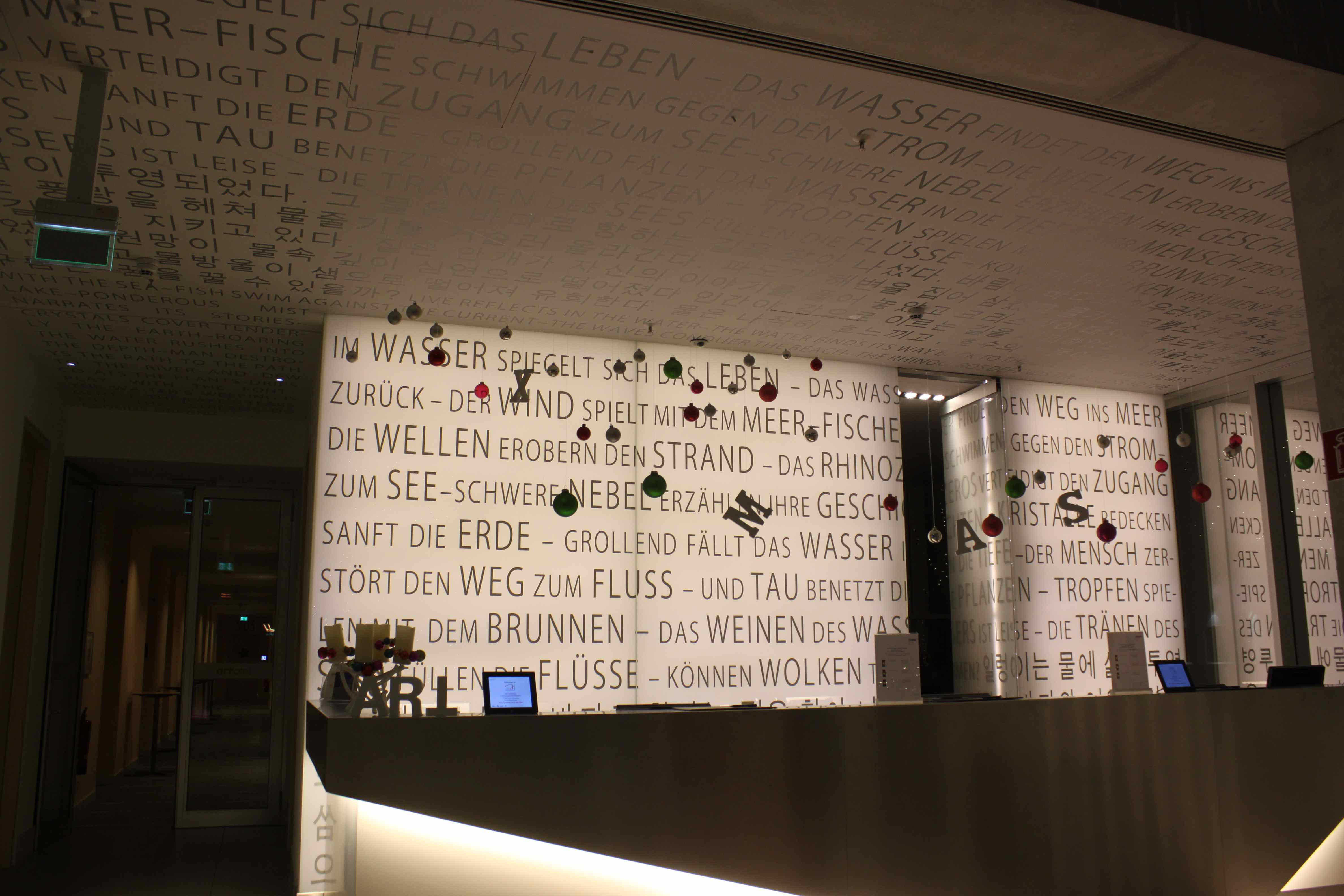 We headed back to our hotel and snuggled up to watch Baz Lurhman’s ‘The Great Gatsby’ which was one of about 40 films on offer. This is the funky Reception desk at the hotel.