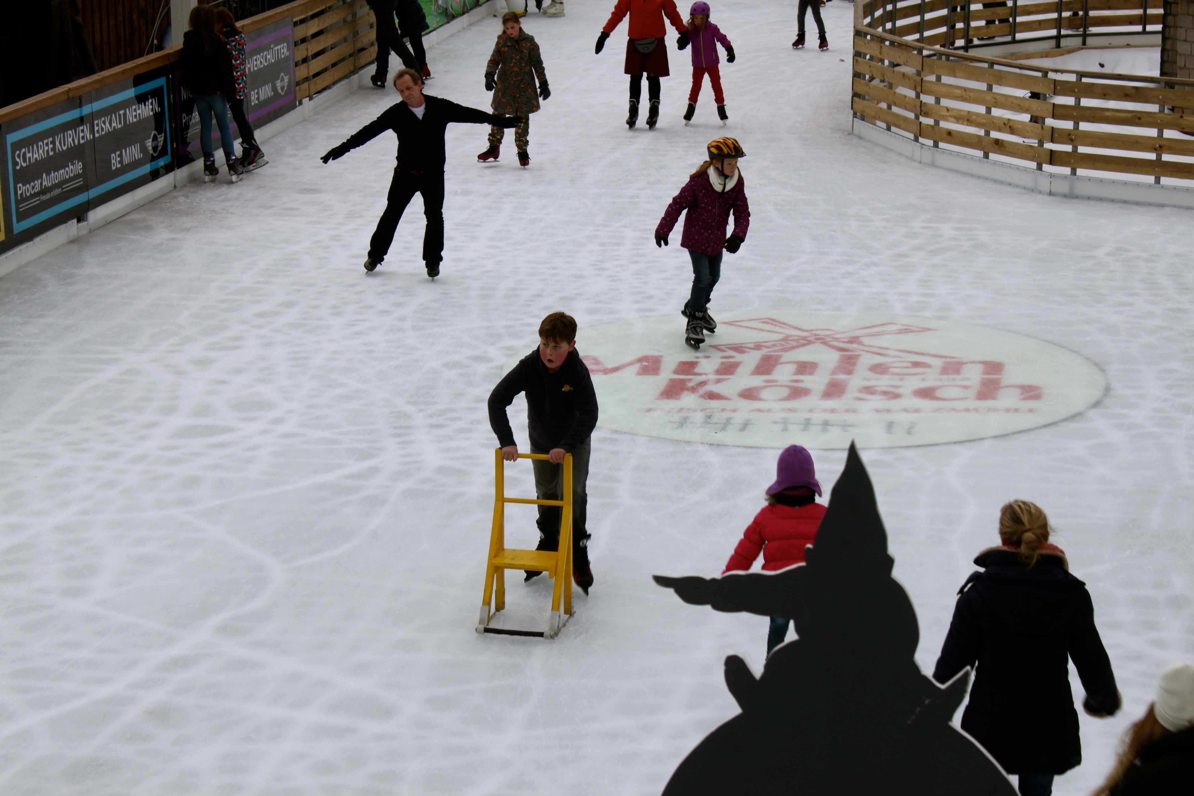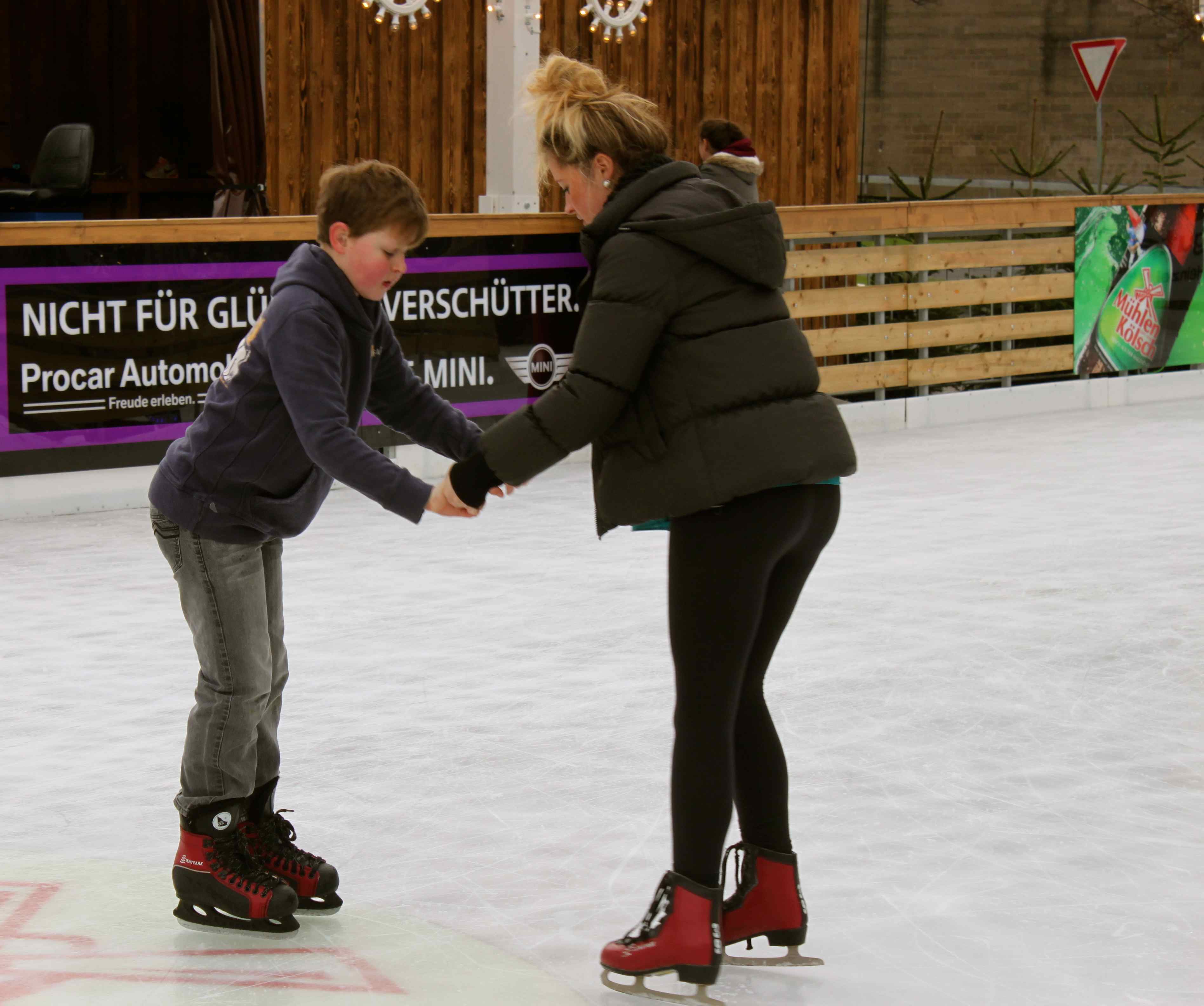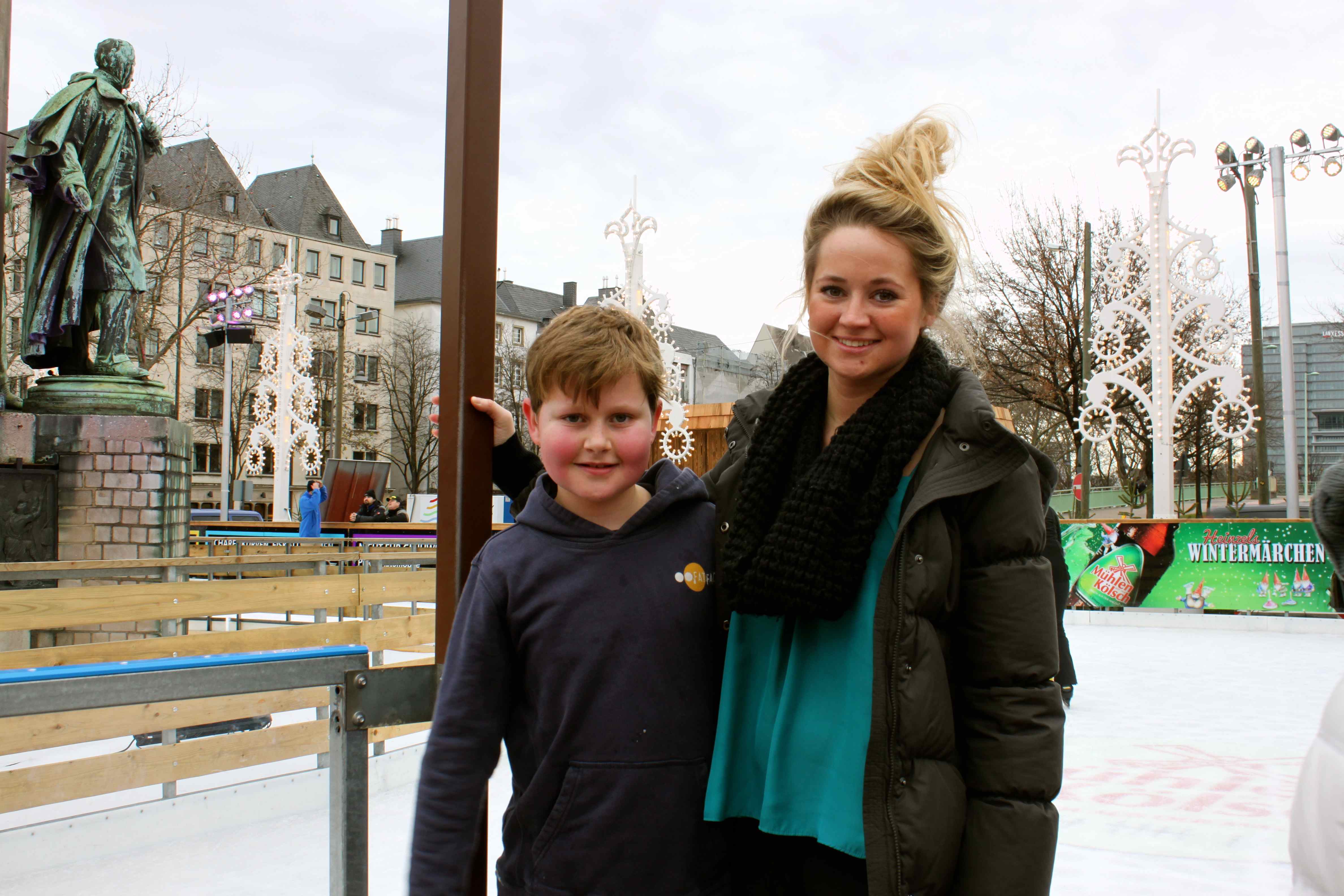 The Christmas market on the Alter Markt had an ice skating rink. Lara used to skate regularly but Harvey had never been before. They were both very keen to have a go!