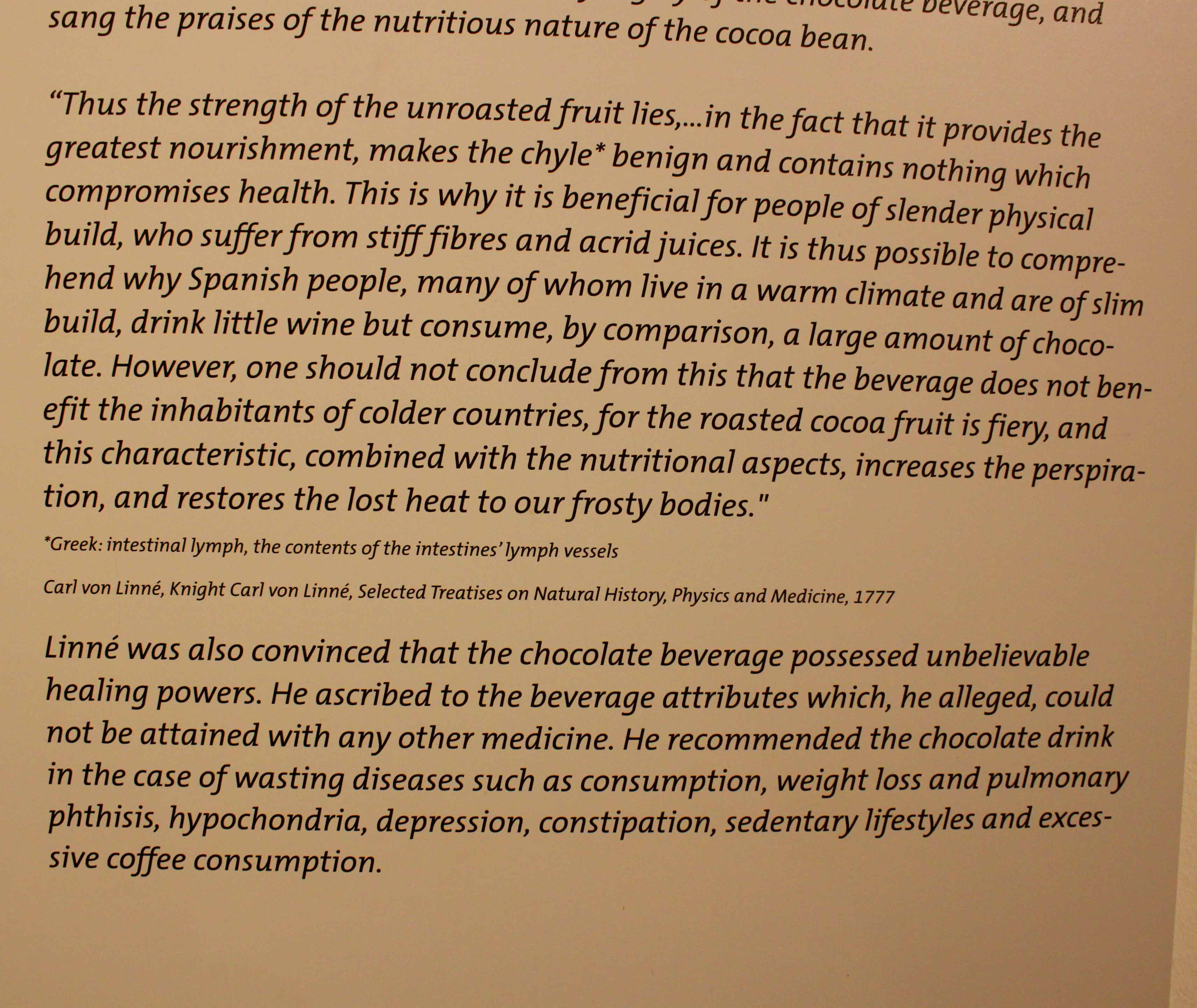Linné, one of the first people to manufacture chocolate from cocoa beans, believed chocolate had many nutritious properties, and helped weight loss! Sadly I do not think that is right or I would be very skinny.