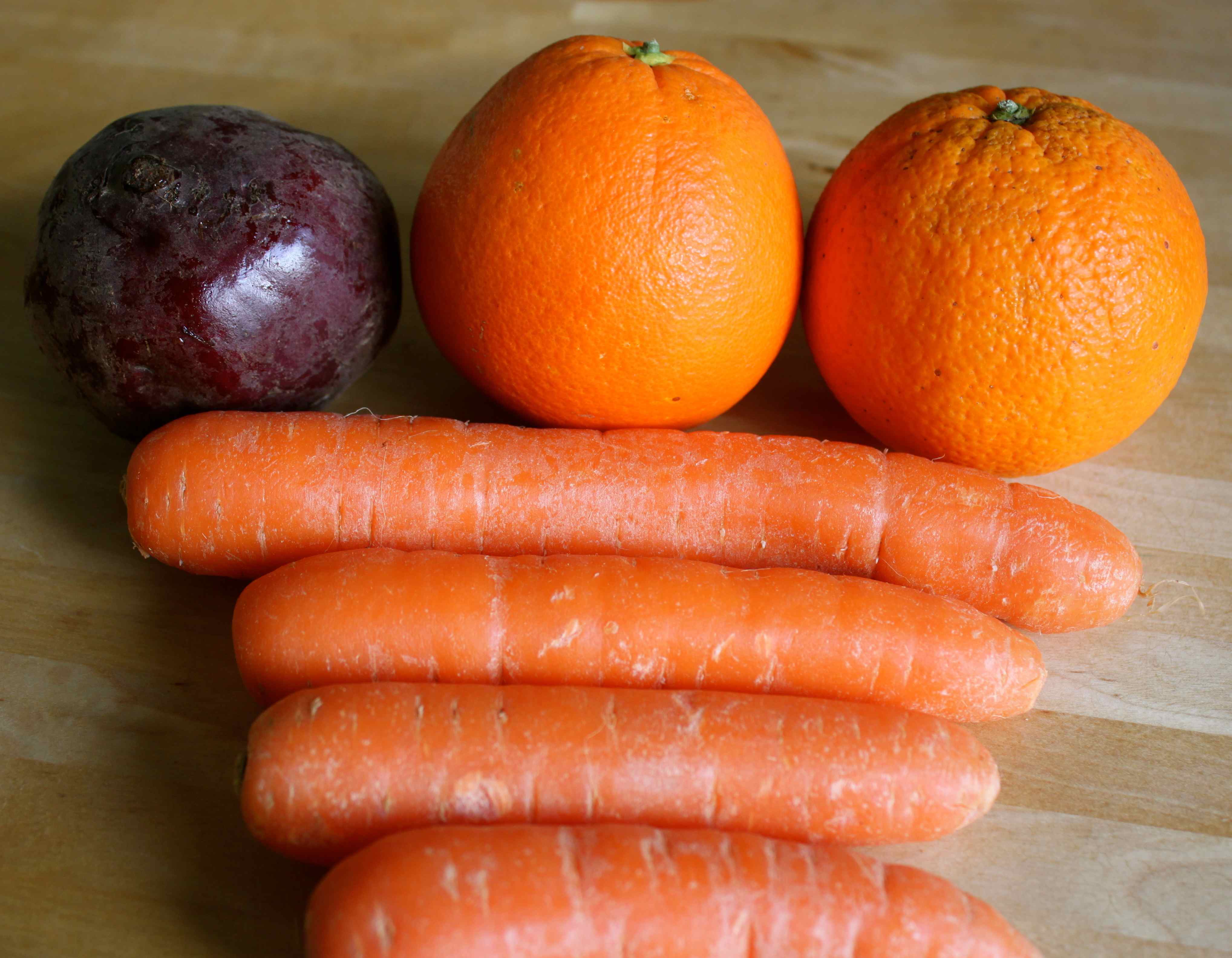 Juice 1 was made with beetroot, 2 oranges and 4 carrots.