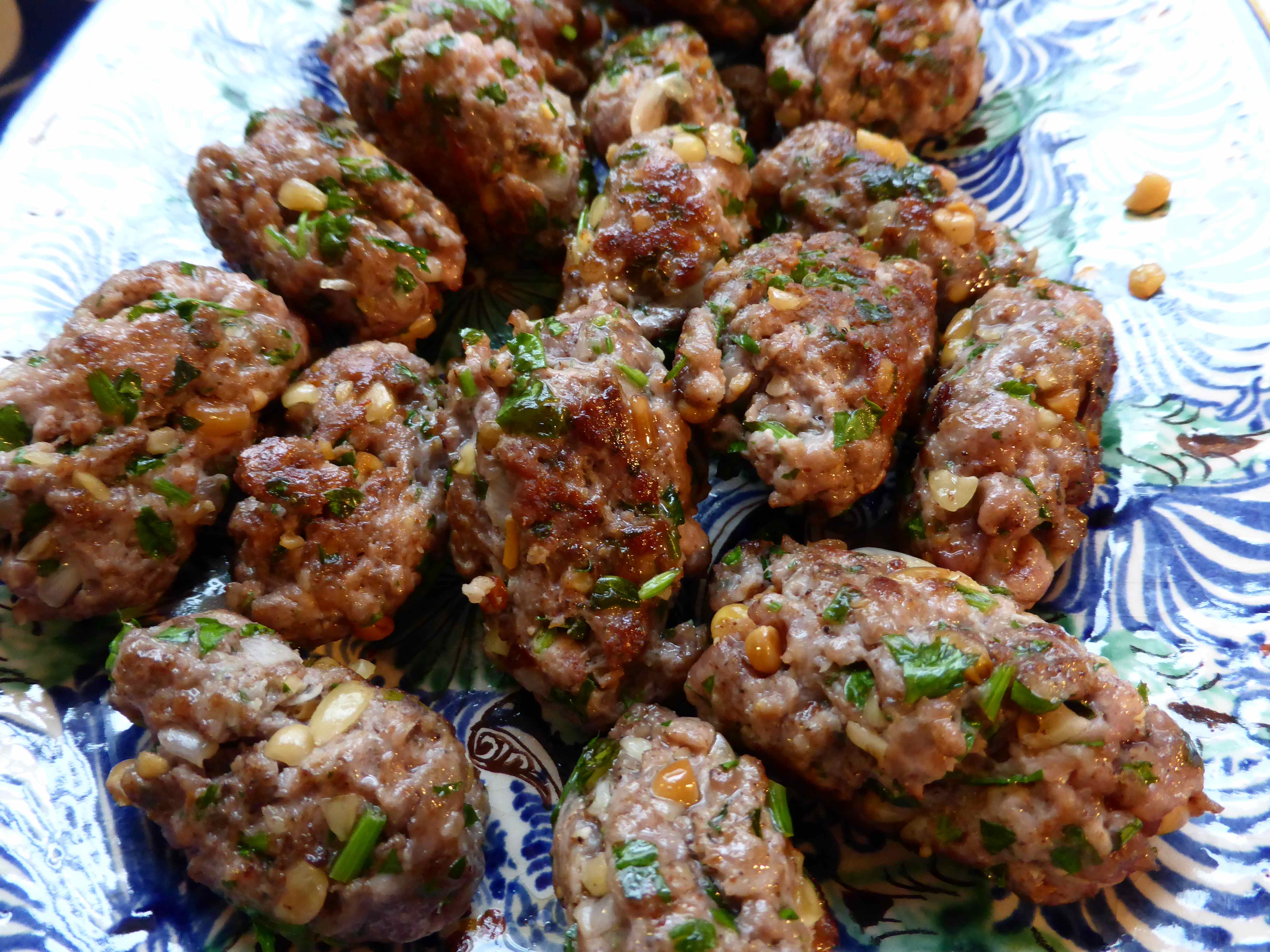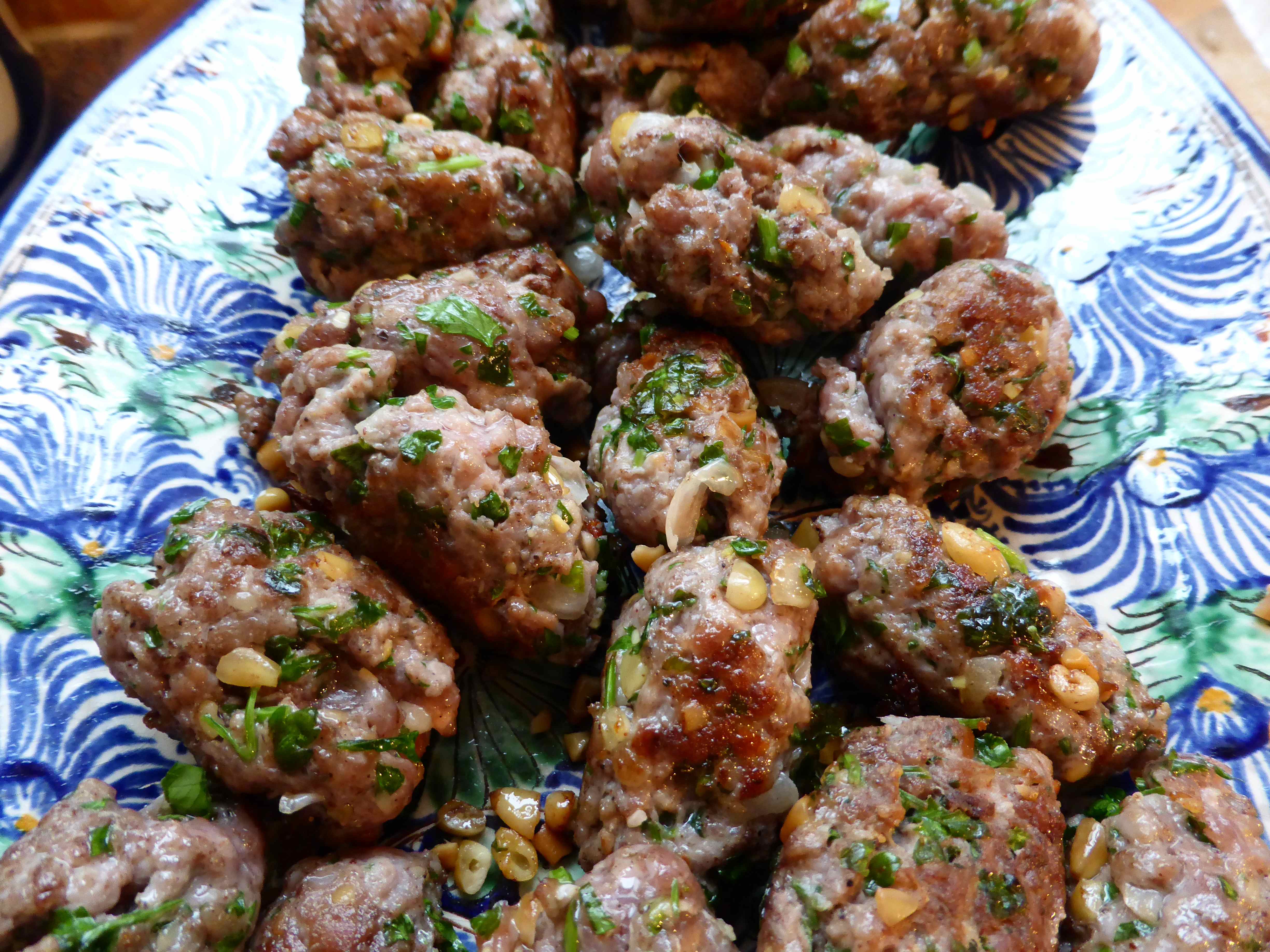 To go with the hummus we had cruditees (celery and cucumber) and also Koftas which are little meatballs. In ‘Jerusalem’ they serve these with a Tahini sauce but I served them with hummus.