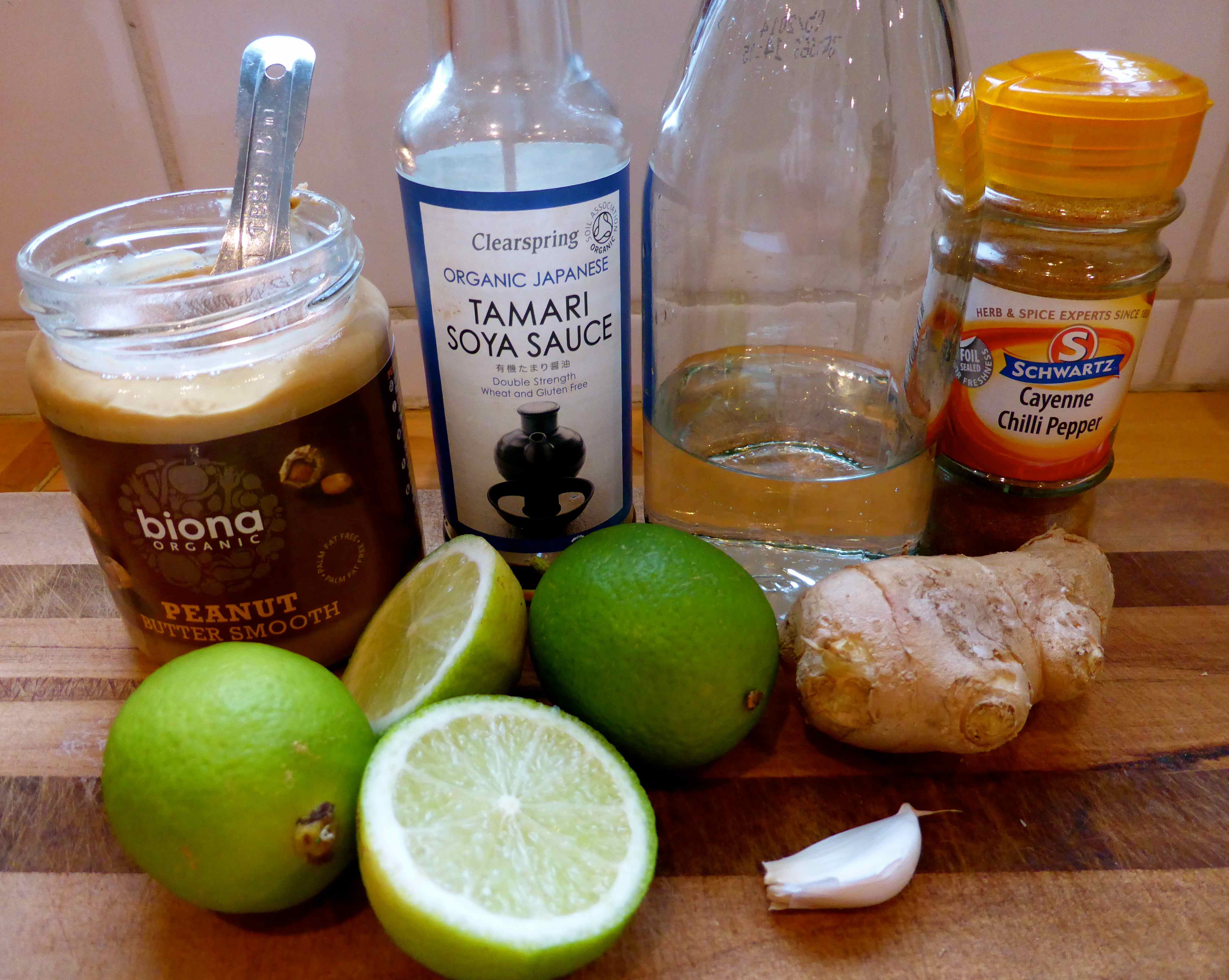 I planned a raw lunch with a tasty dressing. I made the Spicy Peanut Sauce from Oh She Glows. Angela adds maple syrup to hers but I left that out.