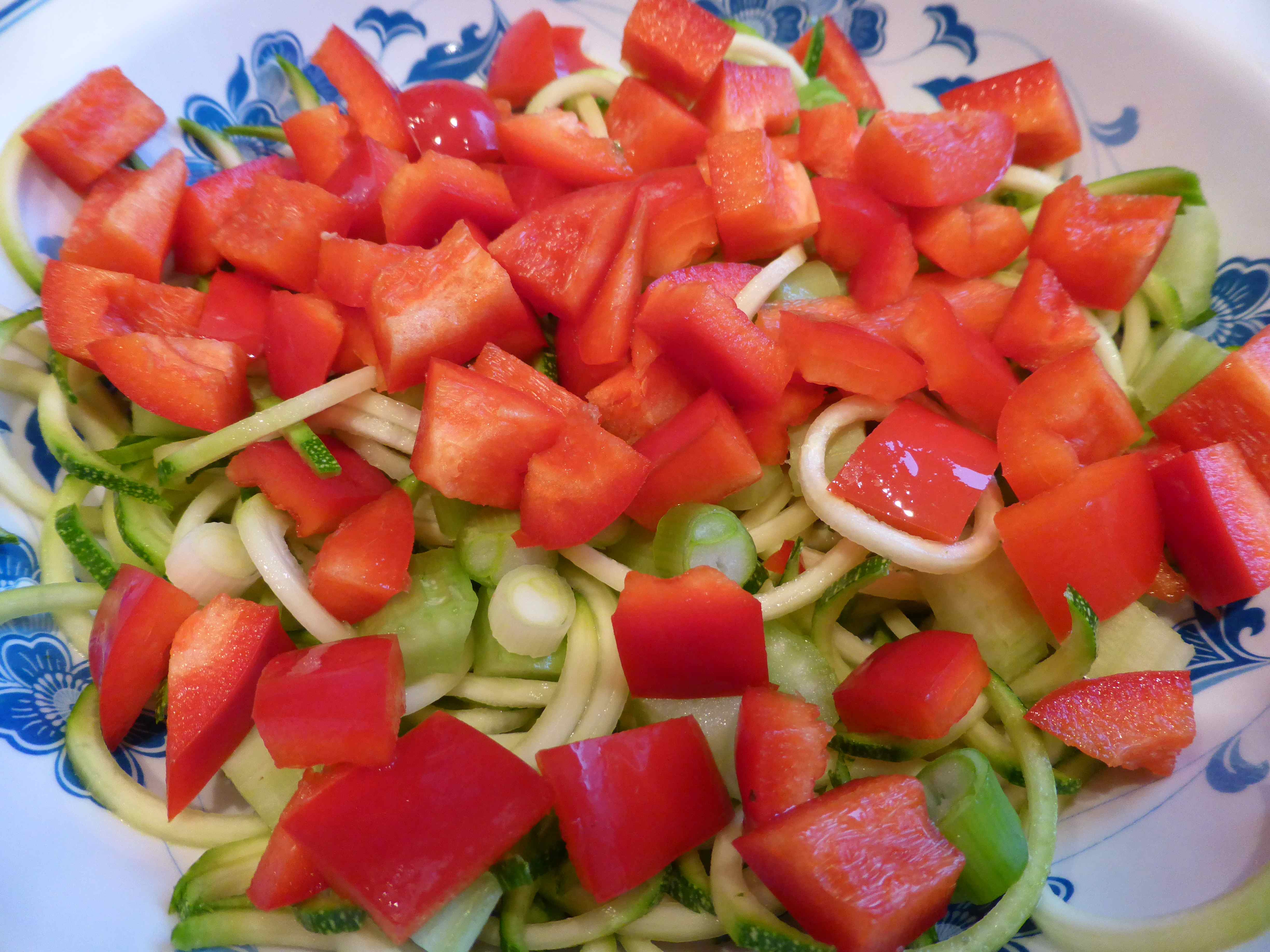So this was a really easy recipe to make and it tasted very fresh, zingy and nutty! I made a salad to put it on from a red pepper, courgette, celery, spring onions and some fresh chilli.
