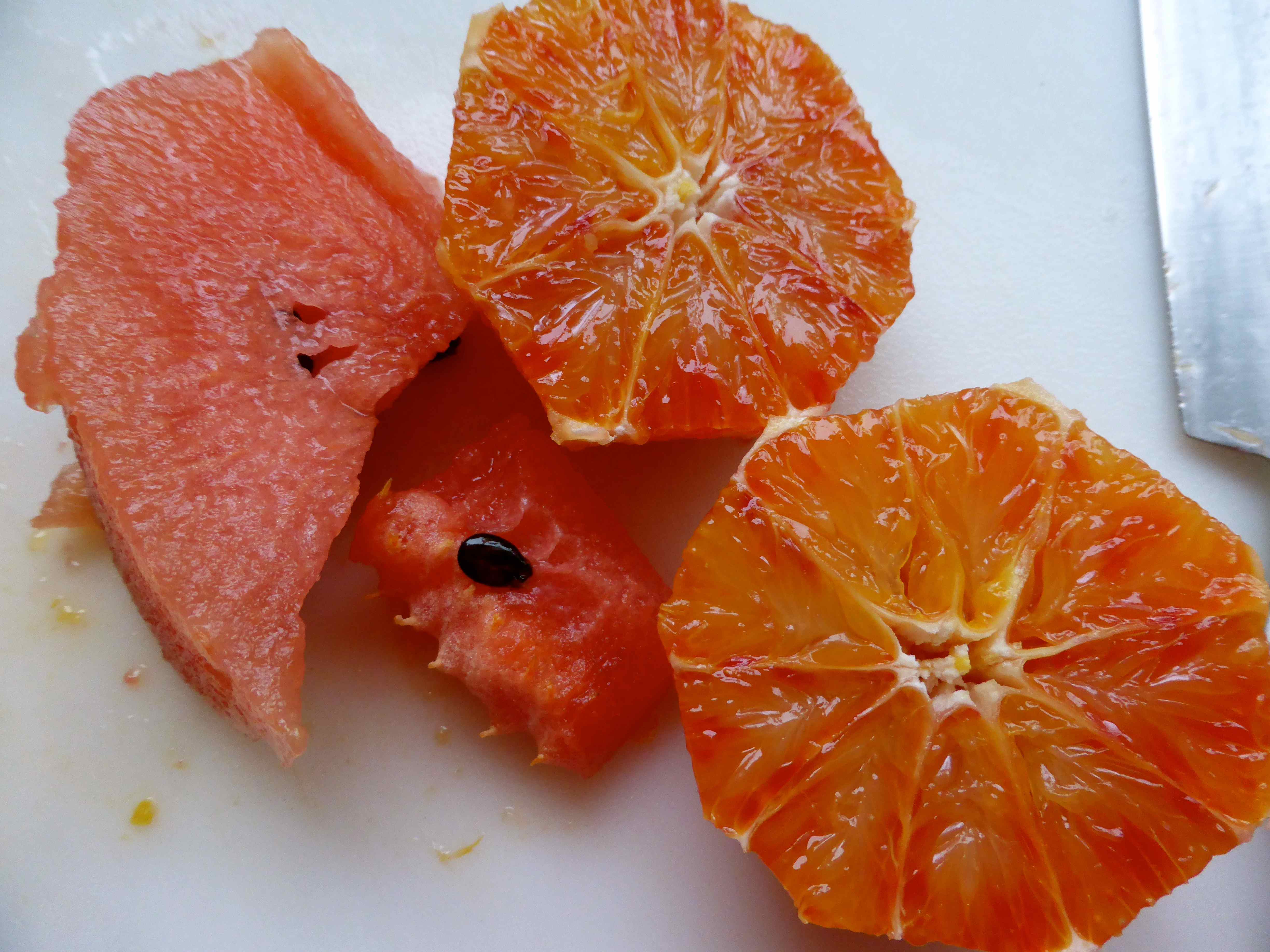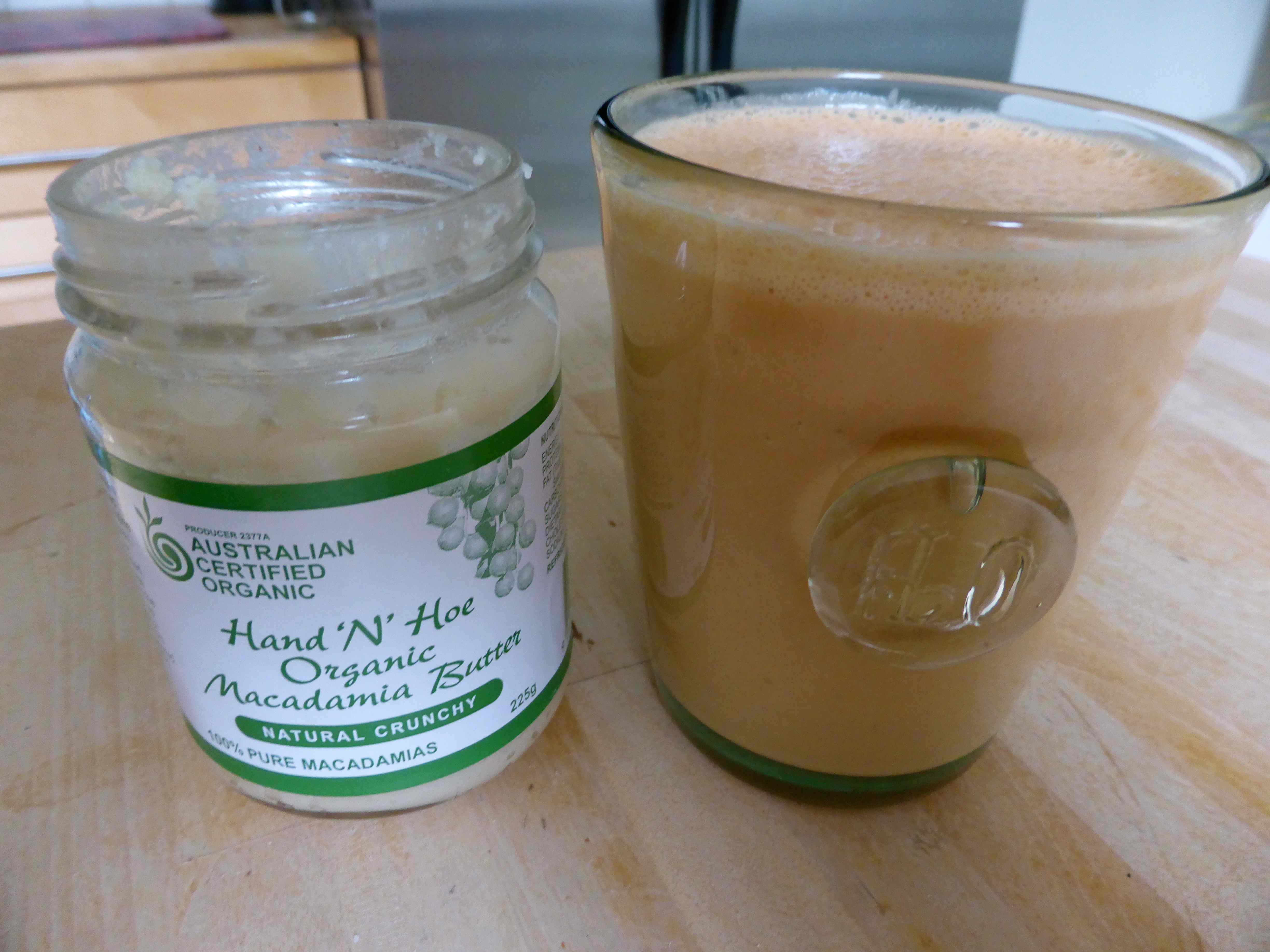 I made a quick smoothie with watermelon, a blood orange, protein powder and macadamia nut butter.