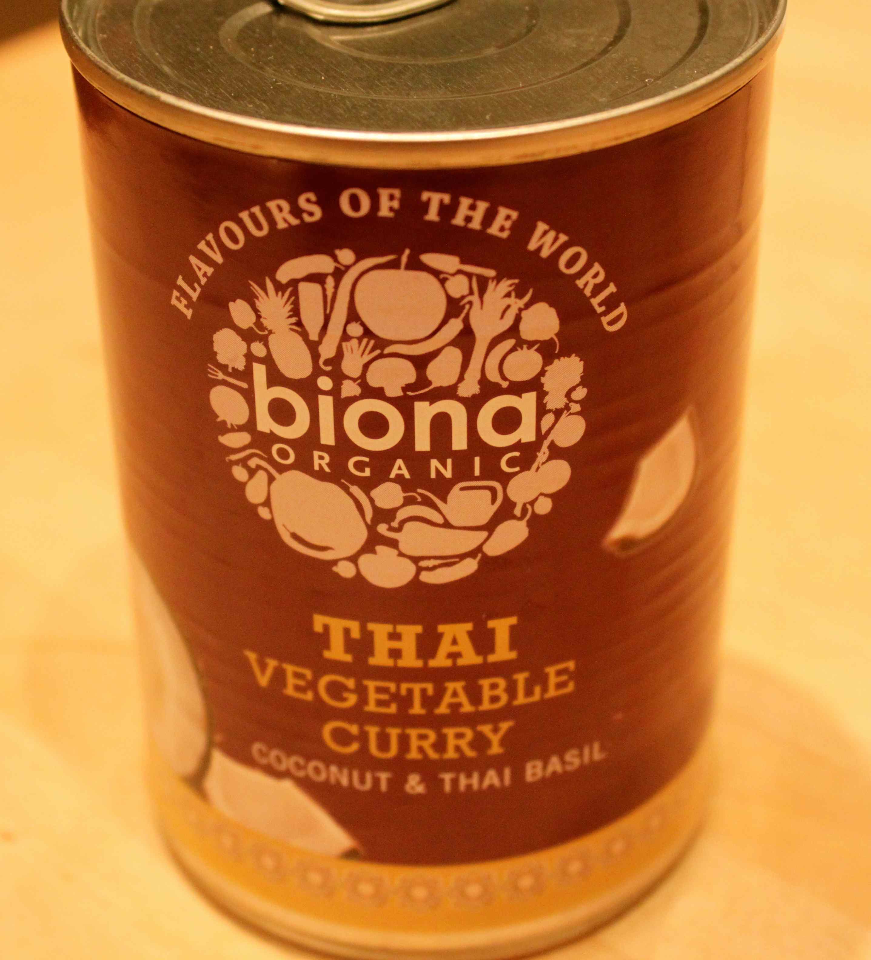 I heated up this can of Thai vegetable curry and added the cooked Basmati rice I had leftover in the fridge.Thai veg curry can