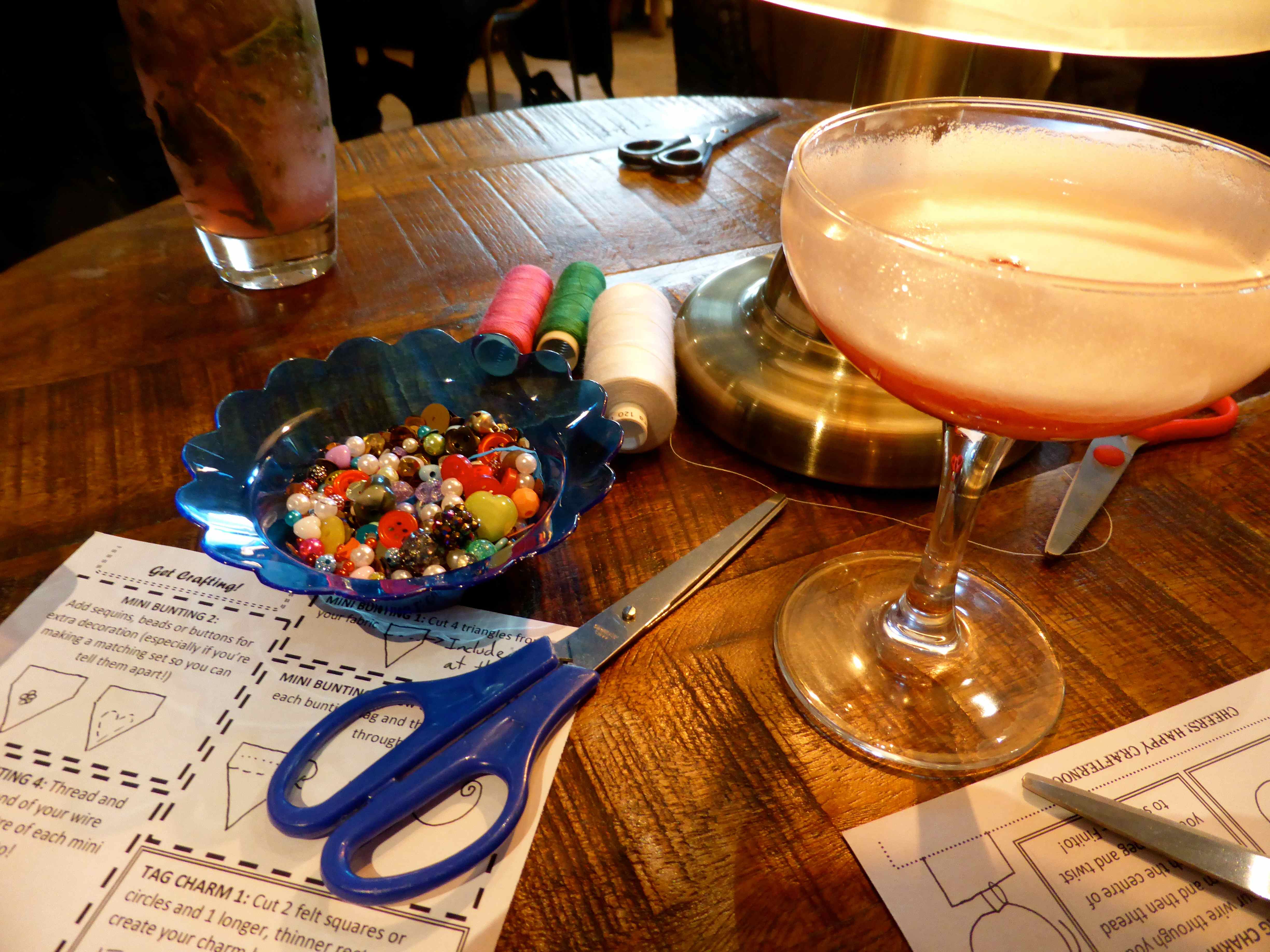 We were making drinks charms. I am not much of a sewer on a good day and under the influence of sake and cocktails I was not having a good sewing day. But I managed a little bit of drinks charm bunting and a drinks charm bag.