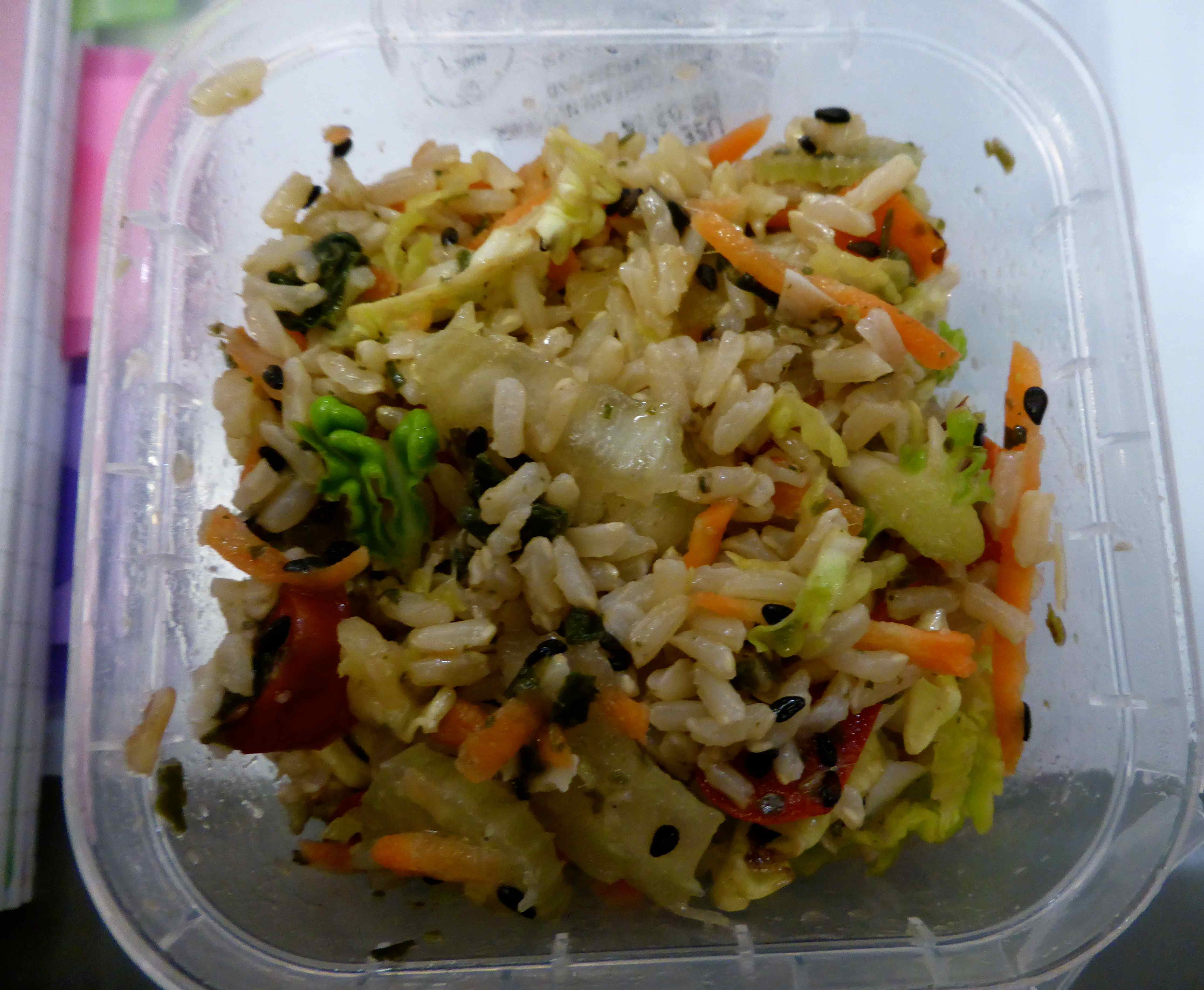 After several drinks this afternoon I was in the mood for something forbidden. I managed to battle my demons. I didn’t eat as healthily as I should have done but I followed my rules so didn’t go crazy. This rice salad was very edible and I enjoyed it on the train home.