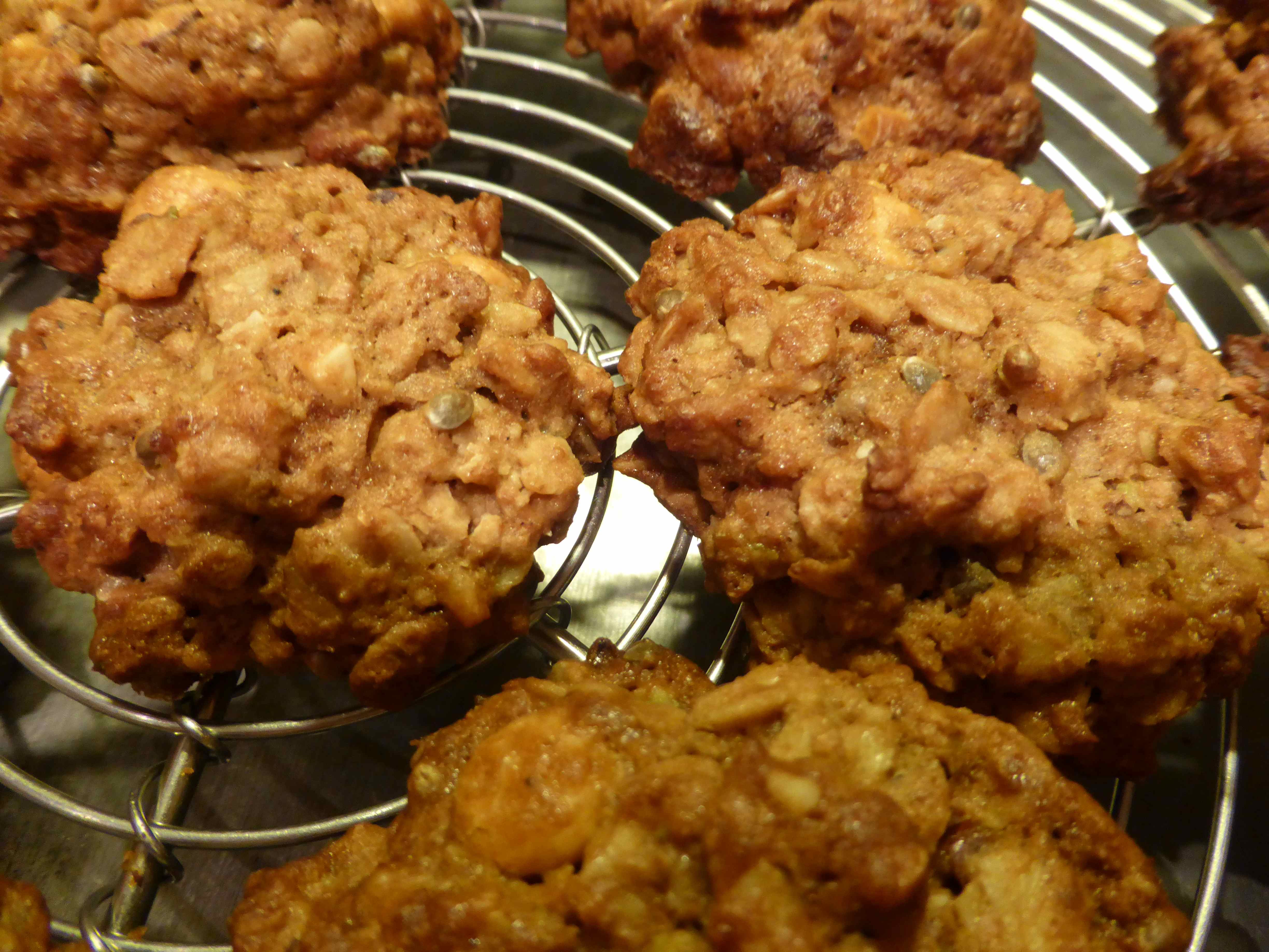 I tried but failed to resist these. They are soft and a little bit chewy with crunchy edges and nutty bits. I was very pleased with these as was the Little Fella.