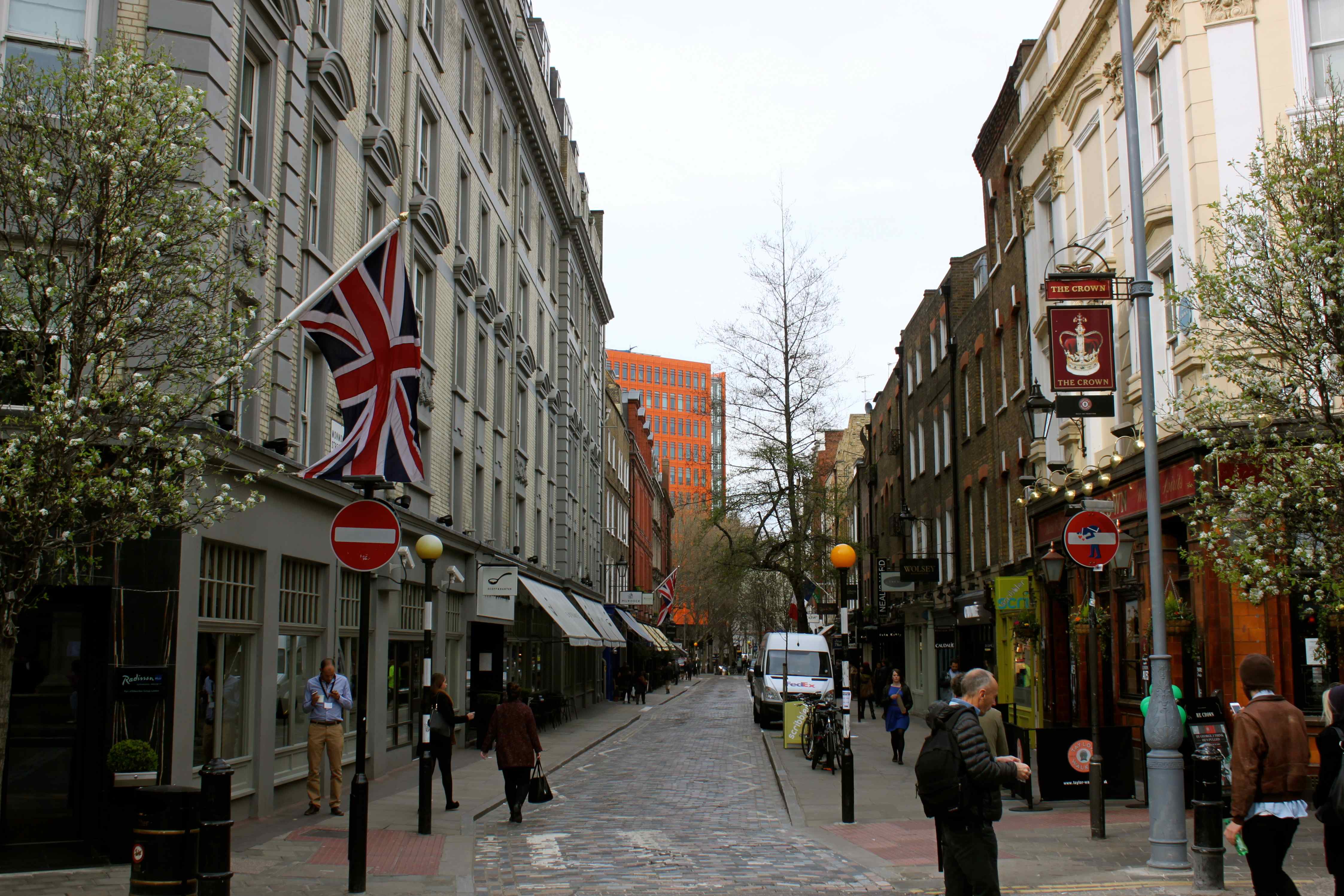 So this is one of my favourite parts of London, Seven Dials. So called because the dial is in the middle of 7 streets that radiate out from the little roundabout with the dial on it.