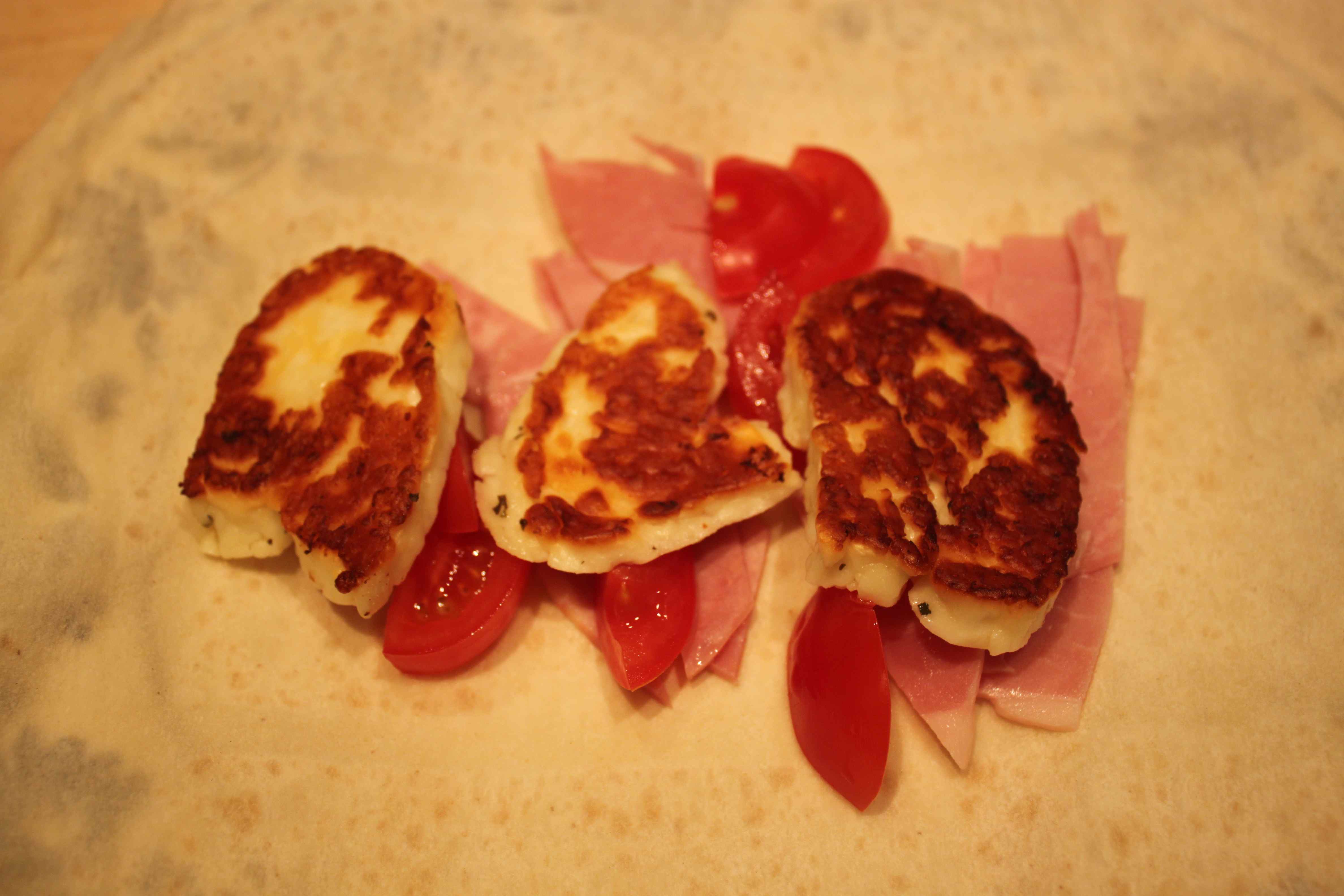 With tomato, ham and Halloumi.