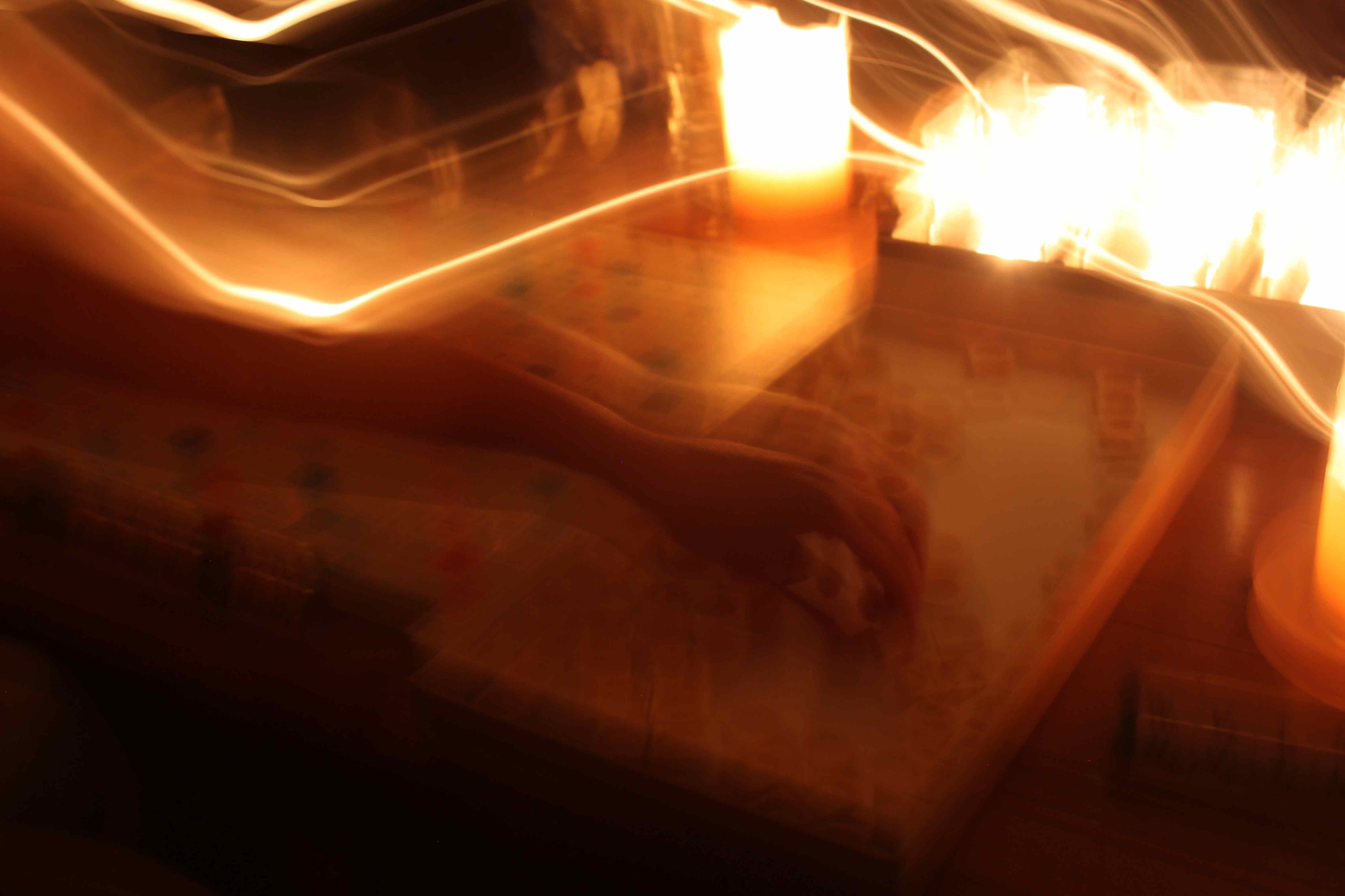 Despite being the supporter and organiser of the family’s Earth Hour acknowledgement on Saturday, it seems that I am the one who broke it.  Several times !  I took a couple of photos and turned on the torch so used some battery power.  I didn’t use the flash but did indeed use some battery power which I didn’t think about until I was reprimanded.  I rather like the effect of the photo though.  It is Harvey’s hand, selecting Scrabble tiles with candles in the background.