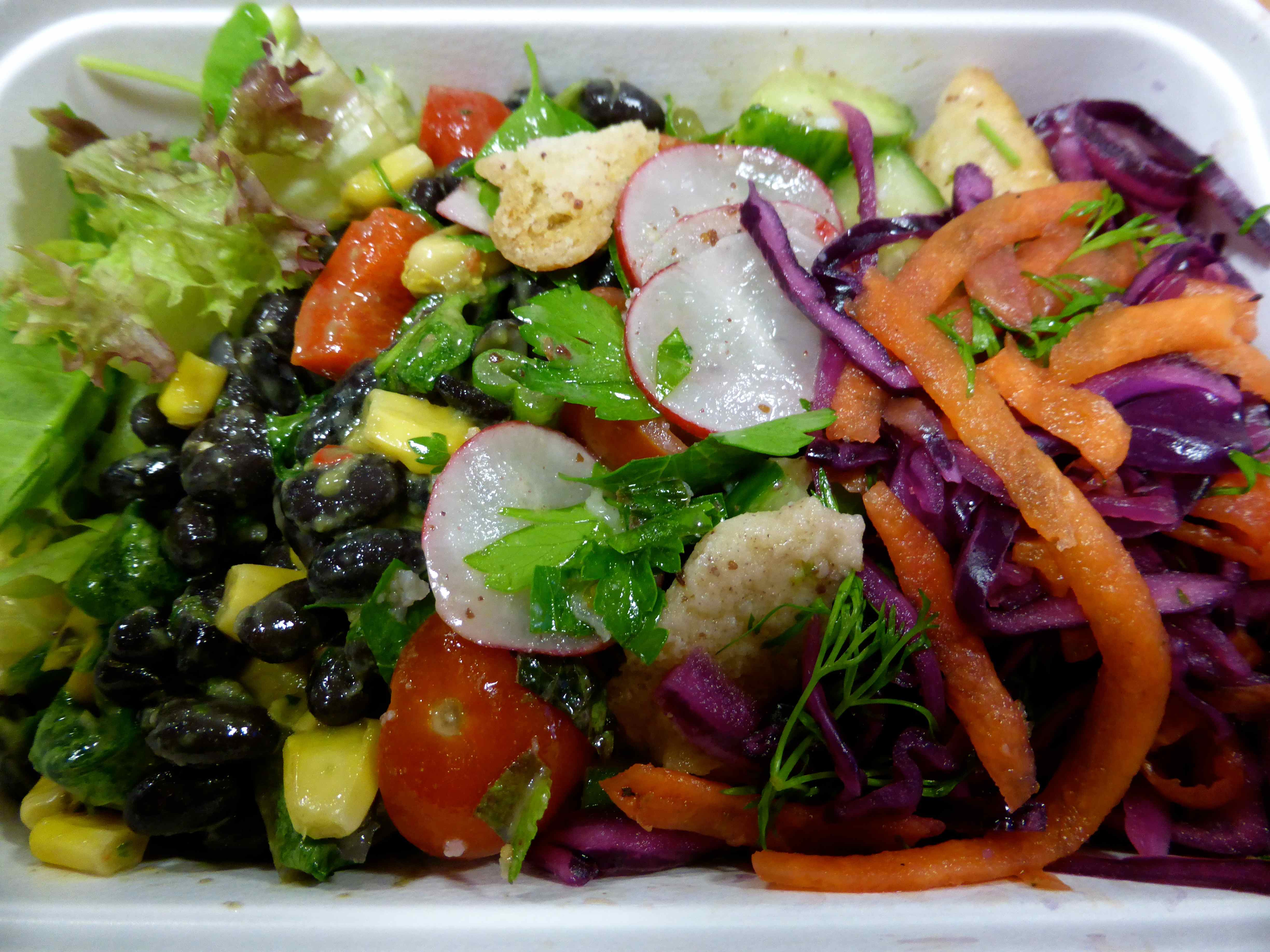 That gives you 4 different salads, each of which is lovely. I also bought a portion of their ‘cream and berry scrunch’ which is amazing but wickedly naughty – a layer of flapjack/granola with whipped cream and fruit.