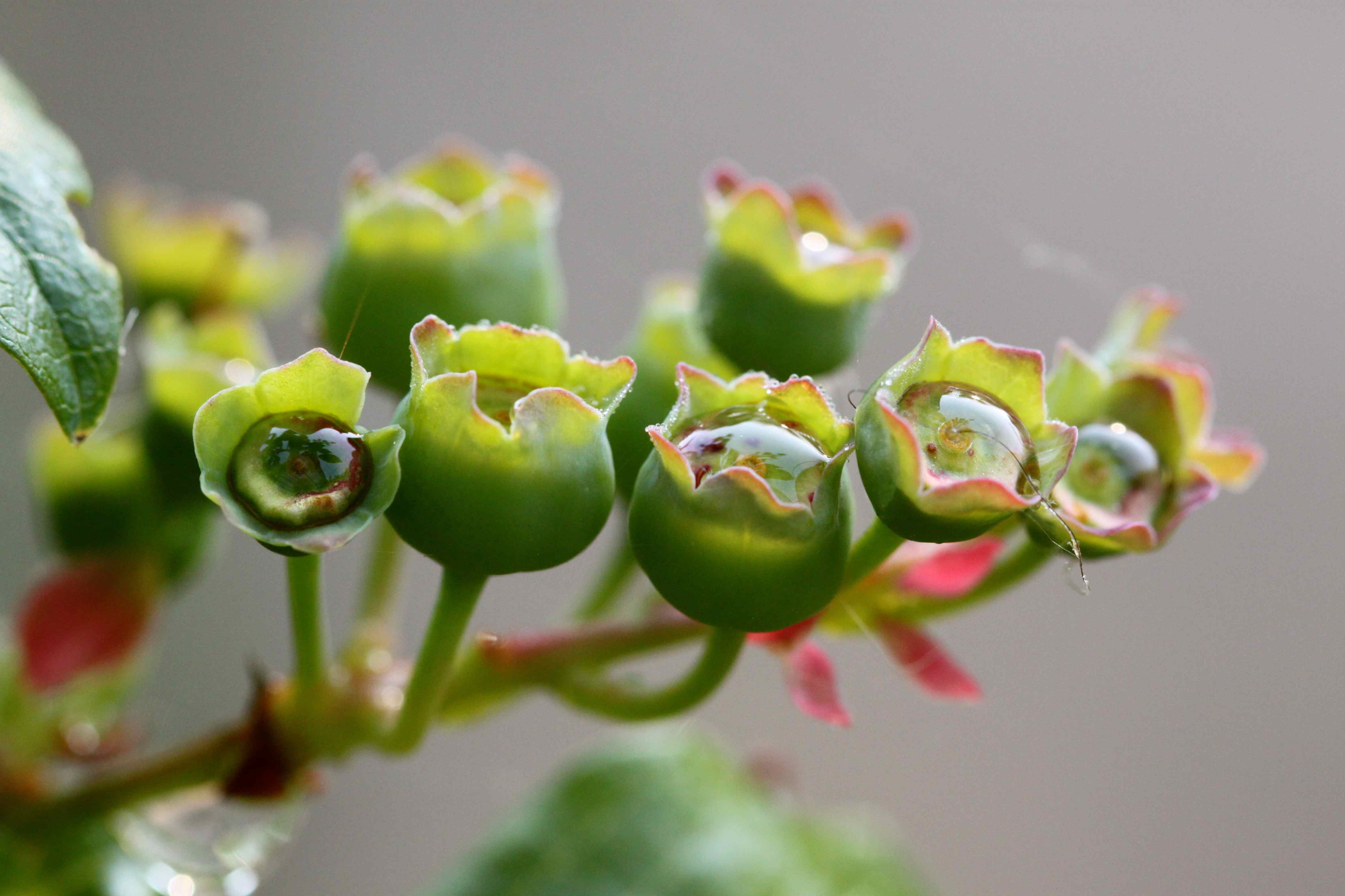 Out in the garden life is looking glorious.  Our garden has some stunning Azaleas and Rhododendrons.Azalea hedge at home They thrive in our slightly acidic soil and have grown in to these huge hedges.  Look at the left hand side of this picture – you can see my car to provide some scale.Rhodedendron hedge at home The small blueberry plant is looking very promising this year.  Have you ever seen blueberries growing?  Well the flowers are pretty little white ones.  These still have some rain on them.blueberries 6 The flowers die and the blueberries grow from the base of the flower head.blueberries 5 You can see better in this picture which I really like as the little blueberry cups are filled with rain water and you can see the cobwebs too.  All signs of the myriad of life in our garden.blueberries 4 Some of these blueberries, which are green, are now the right size and shape so I hope they do turn blue and that I get to them before the birds.blueberries 3 This shot is looking down in to the cups where the flower petals have recently fallen and the blueberries are just beginning to grow.  When you see how long they take to grow, how few there are on a plant and how long they take to pick, you stop feeling resentful at the high price of them in the shops.blueberries 2 They look perfect – just the wrong colour.blueberries 1 I made a chia pudding this week so I had something healthy to take to work for breakfast.  I got the recipe from Healthy Happy Life, a vegan blog I dip in and out of.  It is really easy to make – just remember to think about it the night before.
