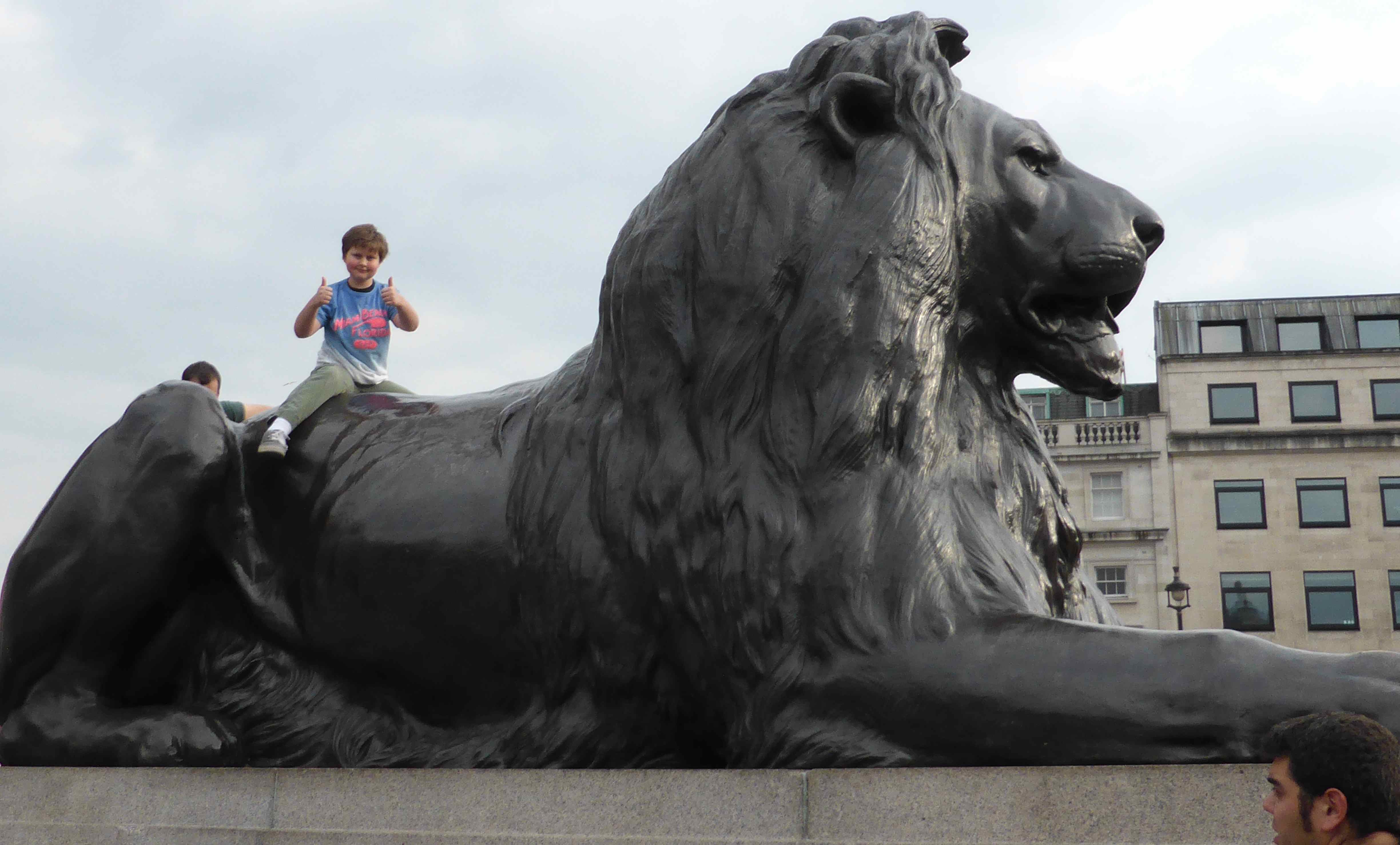 Harvey also managed to get on to one of the lions which was not easy without any assistance. Look how enormous they are! With quite a long drop down from the lion’s back I was relieved when he was safely up there. Well, maybe stable rather than safe as I am not sure this is at all safe.