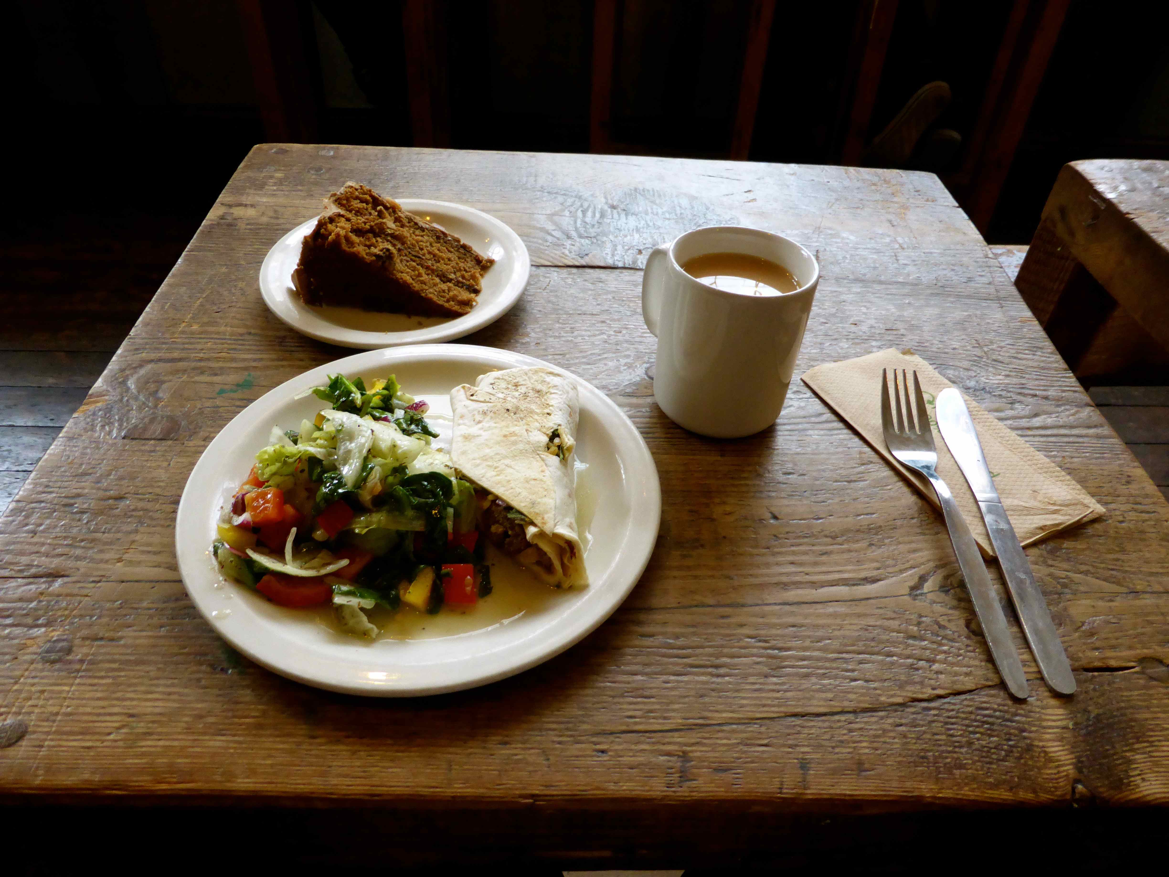 I enjoyed a salad with falafel in a wrap while I flicked through some books I had bought Harvey and caught up on email.