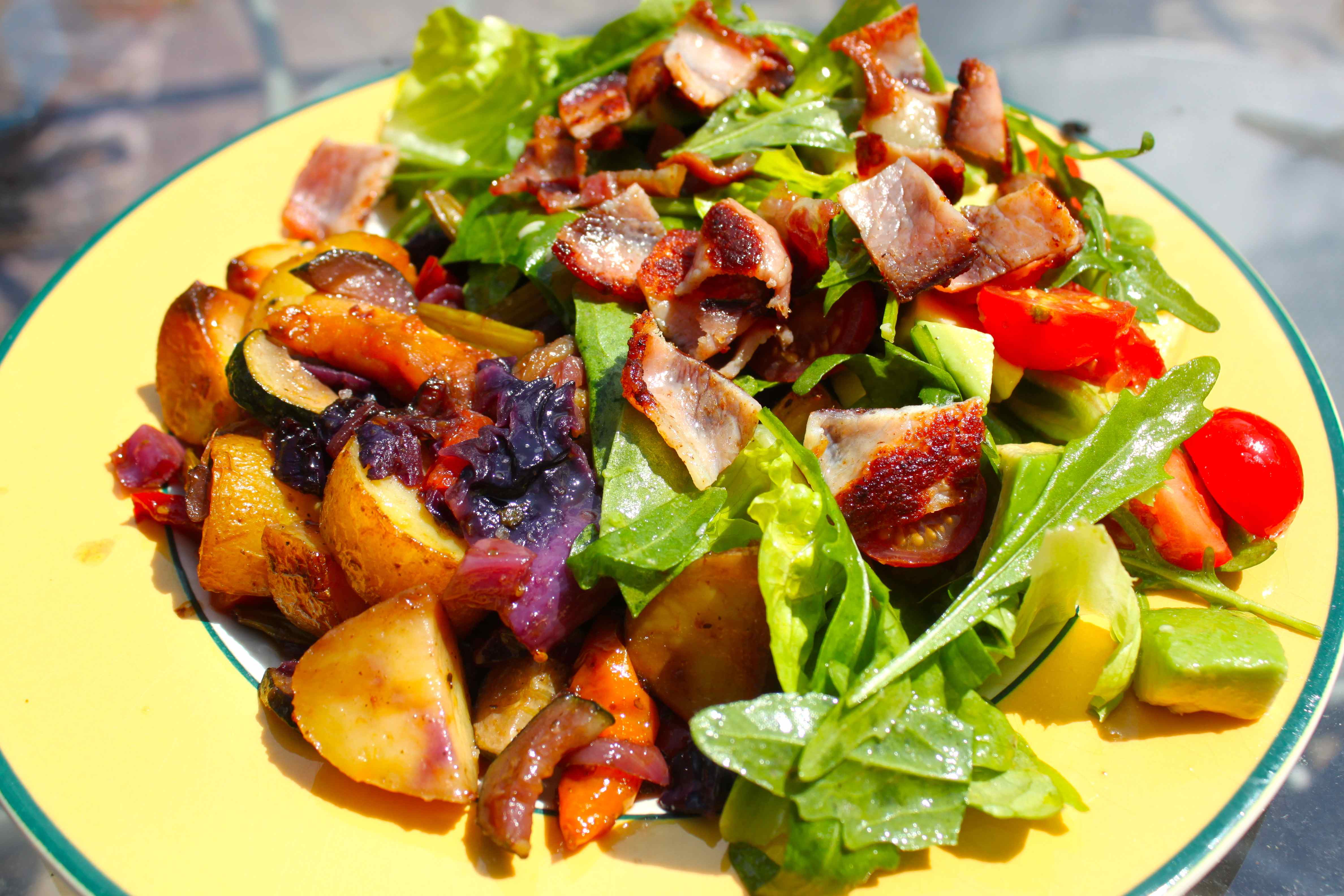 I picked lettuce, rocket and spinach from the garden to make a salad.