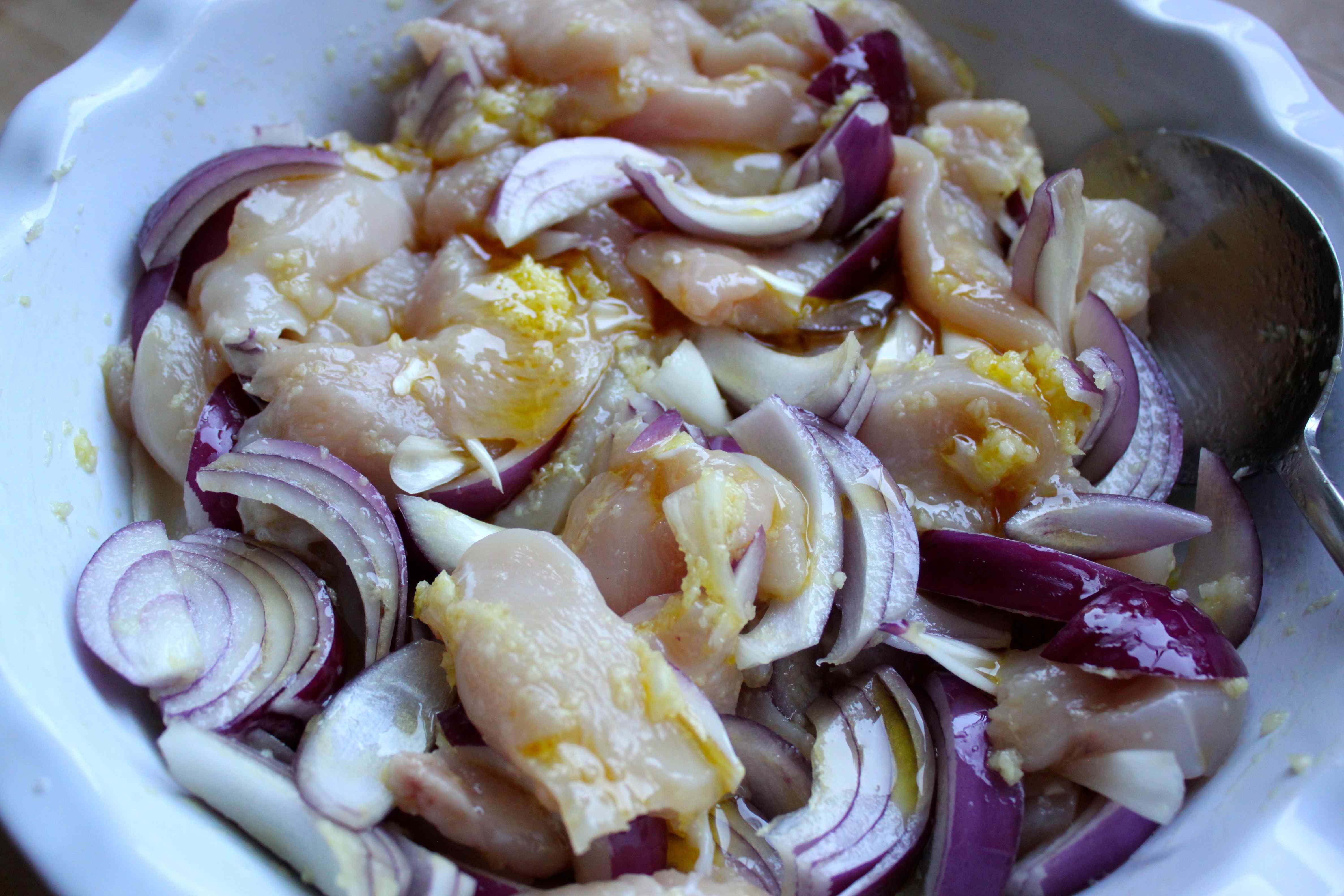 I had 2 good friends over for supper on Friday night but as I was working all day it needed to be something easy. I marinaded some chicken breasts and red onions in Rapeseed oil, minced garlic and ginger for the afternoon.