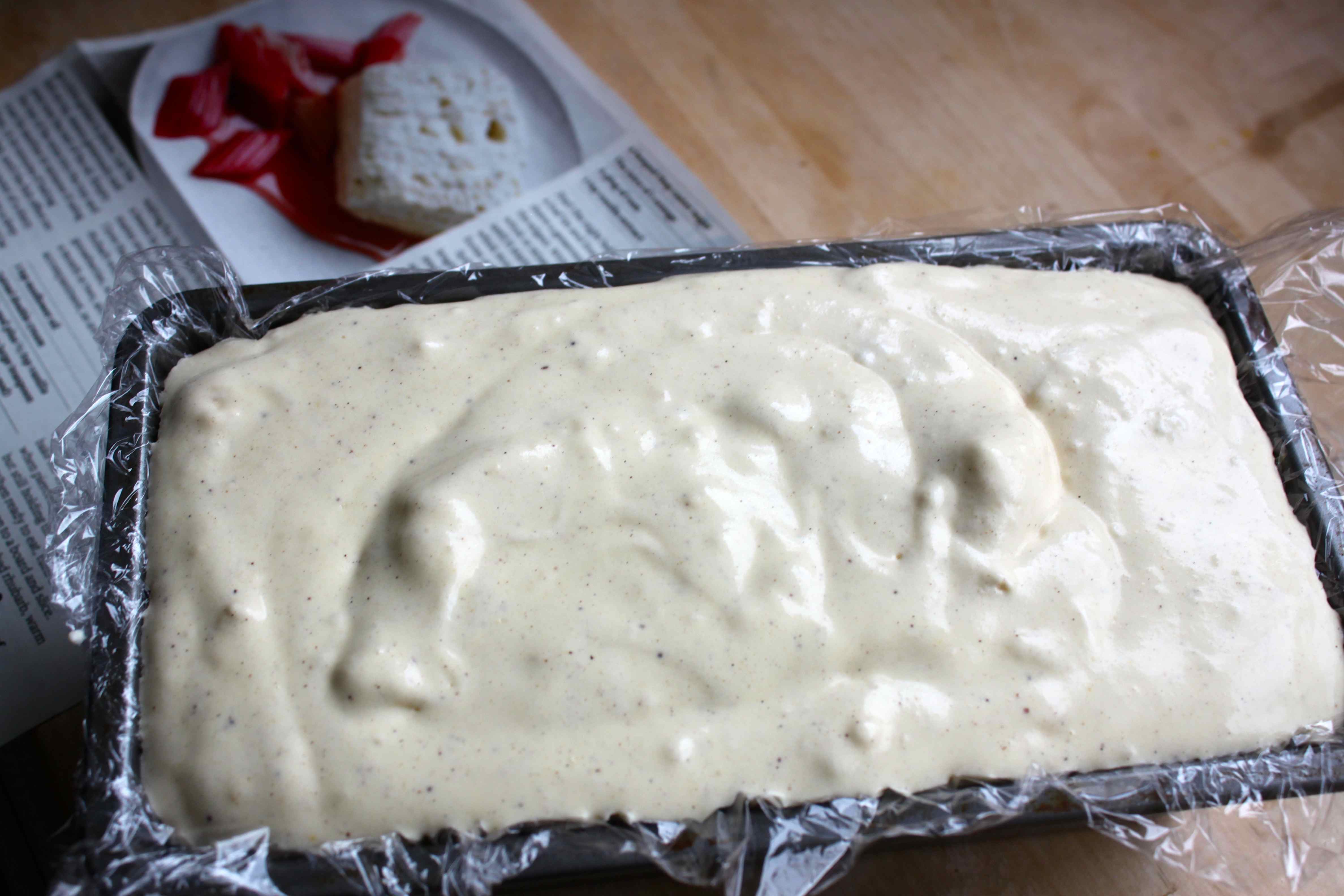 Now for the wicked but completely delicious recipe I promised you. This recipe comes from the Guardian dated 12th April 2014 and is for Meringue Ice-Cream with Baked Rhubarb. You do NOT need an ice cream maker but this comes out smooth as if you have used one.