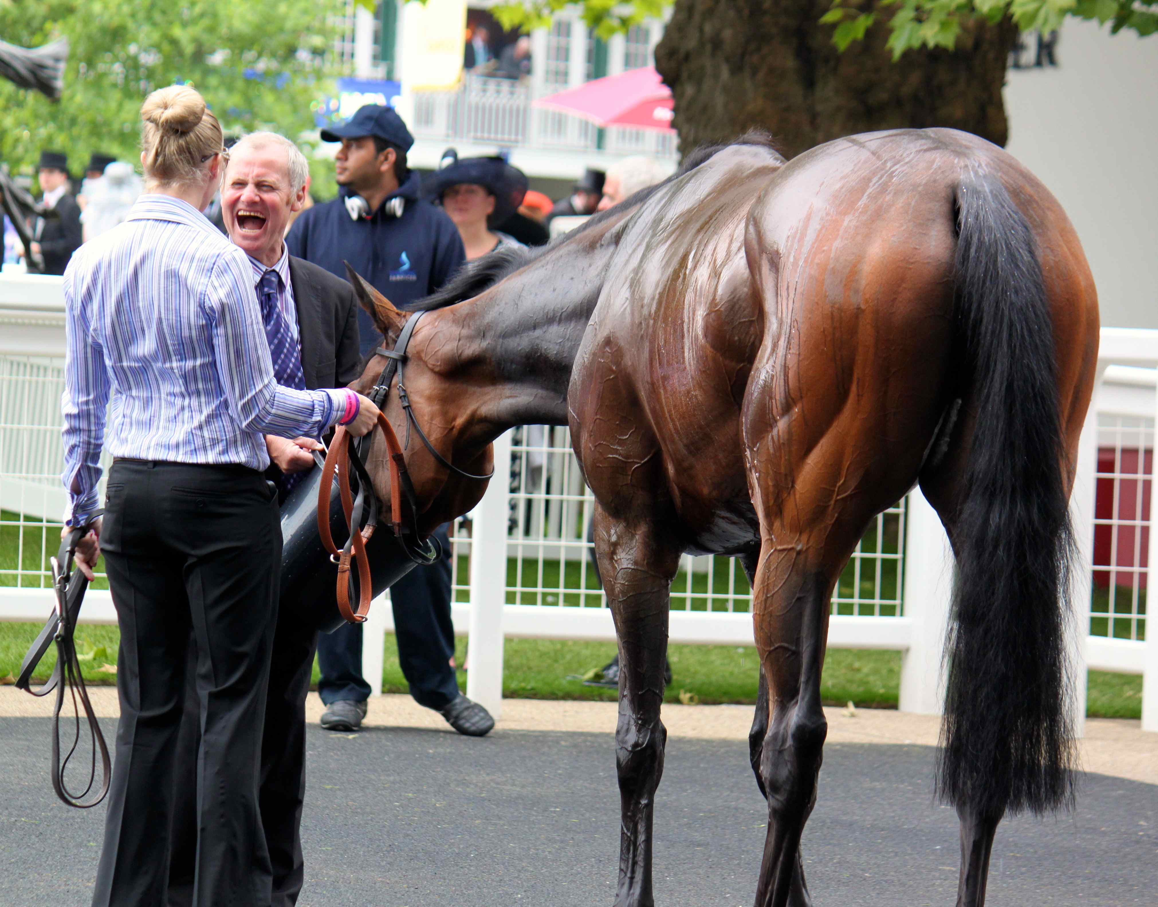 We were in the Royal Enclosure which has a very strict dress code. All the ladies have to wear a hat or a substantial fascinator – ALL the ladies 🙂