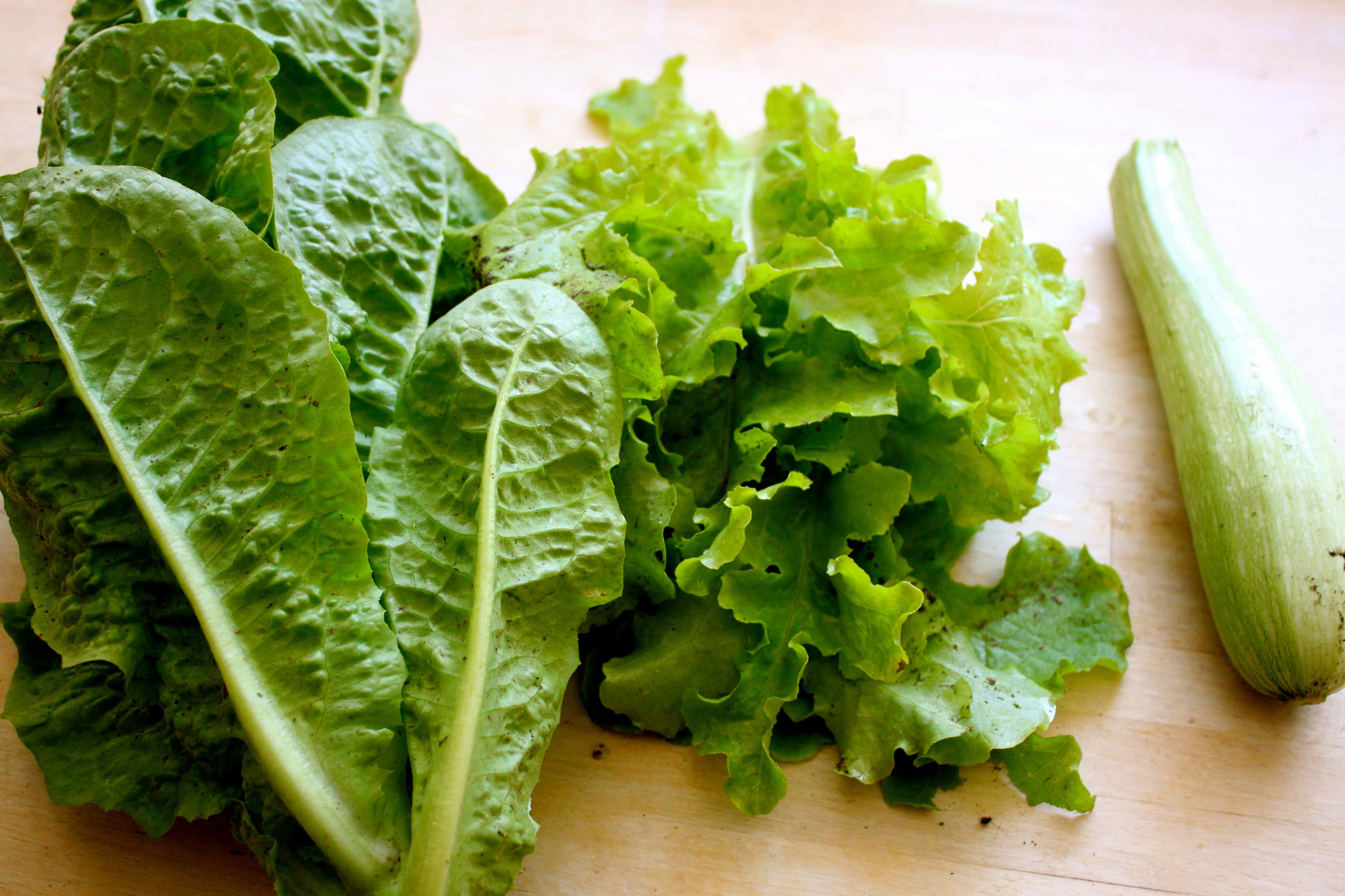 Salad for lunch made with 2 types of lettuce from the garden and another courgette.