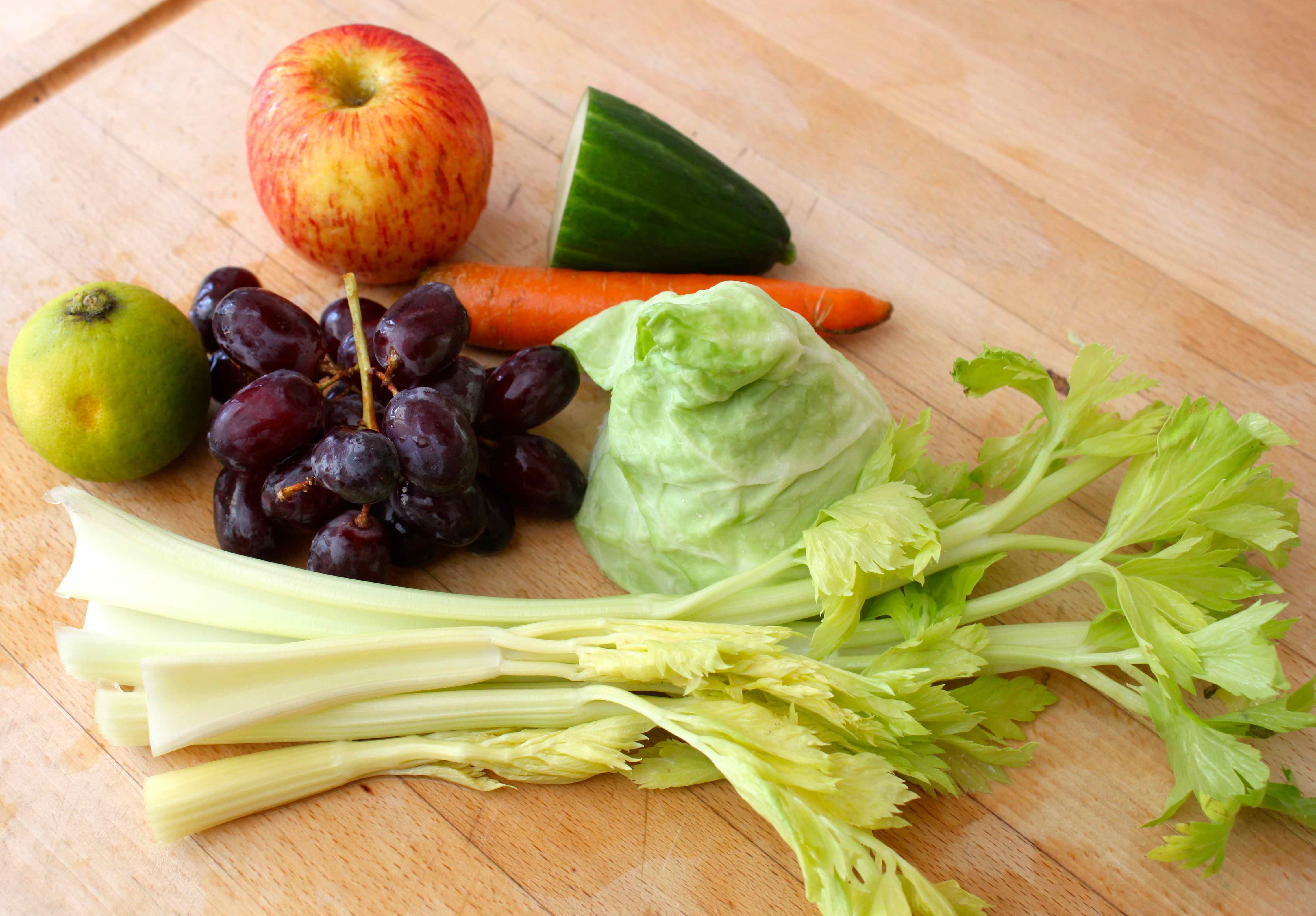 This morning I made another juice for breakfast, using up some of the produce I had in the fridge; apple, lime, grapes, cucumber, carrots, cabbage and celery.